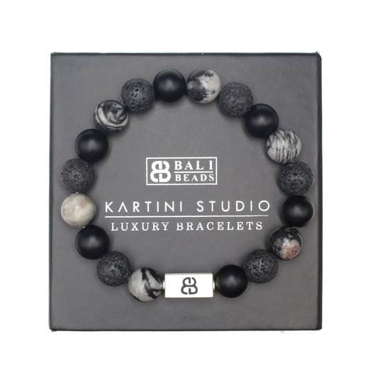 Spiderweb Jasper, Lava Stone, Matte Onyx, and Sterling Silver