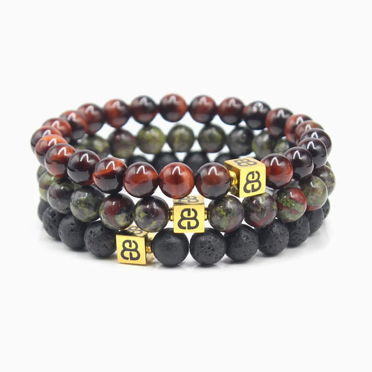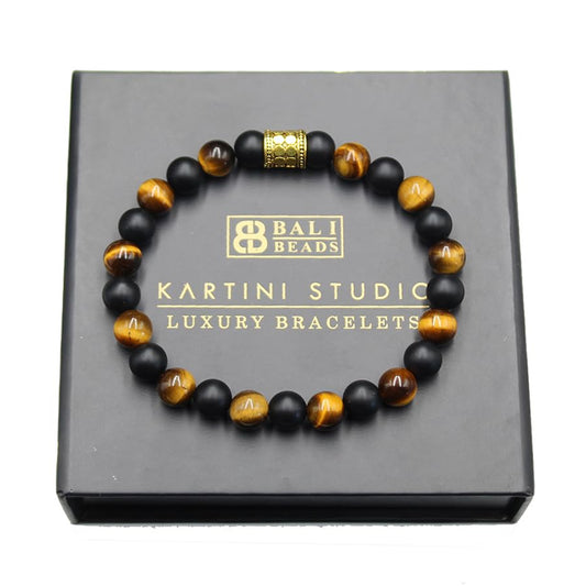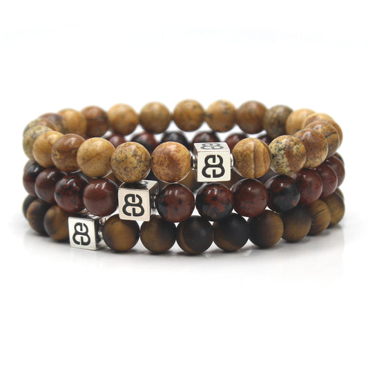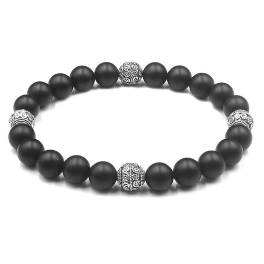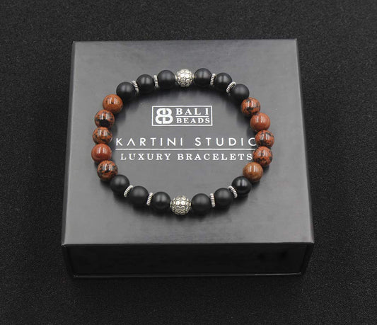 Mattes schwarzes Onyx, Mahagoni-Obsidian und Sterling-Silber-Armband, Perlenarmband für Herren