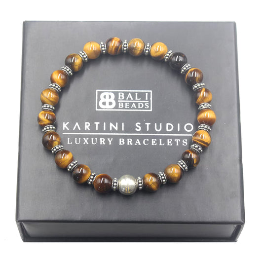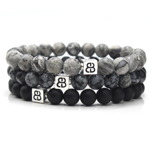 Falkenauge Stein Armband, Herren Armband, Graues Stein Armband