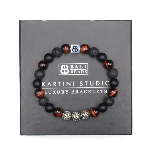 Rotes Tigerauge, Lavastein und mattschwarzer Onyx