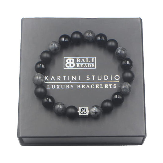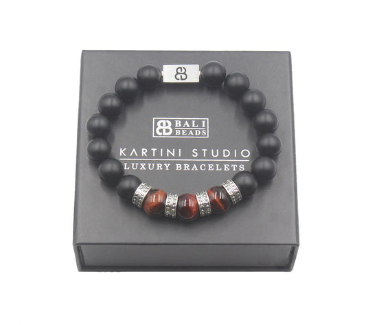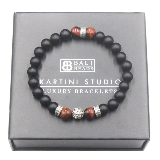 Rotes Tigerauge und Onyx Armband