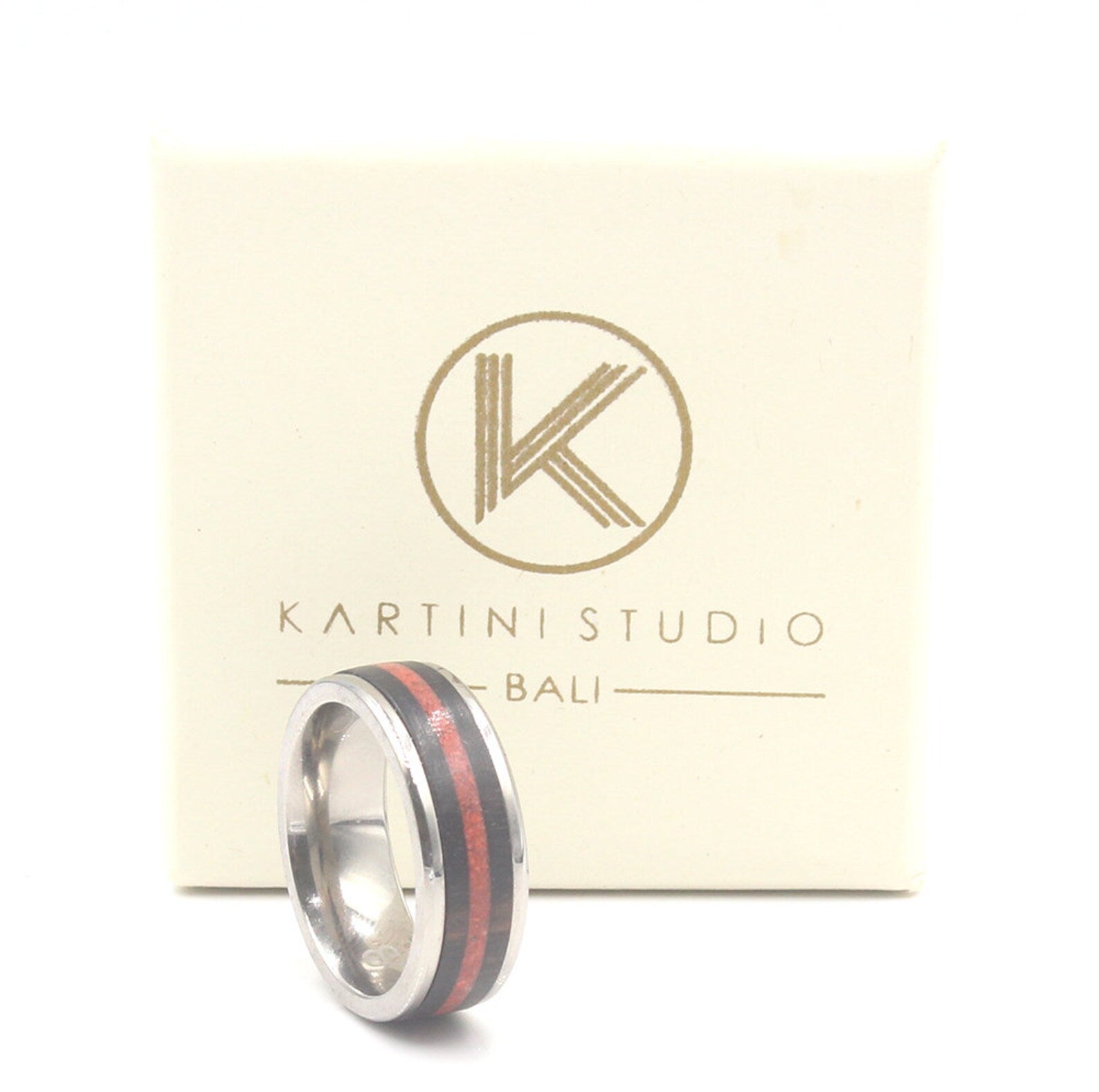 Ring aus schwarzem Arangholz und rotem Jaspis