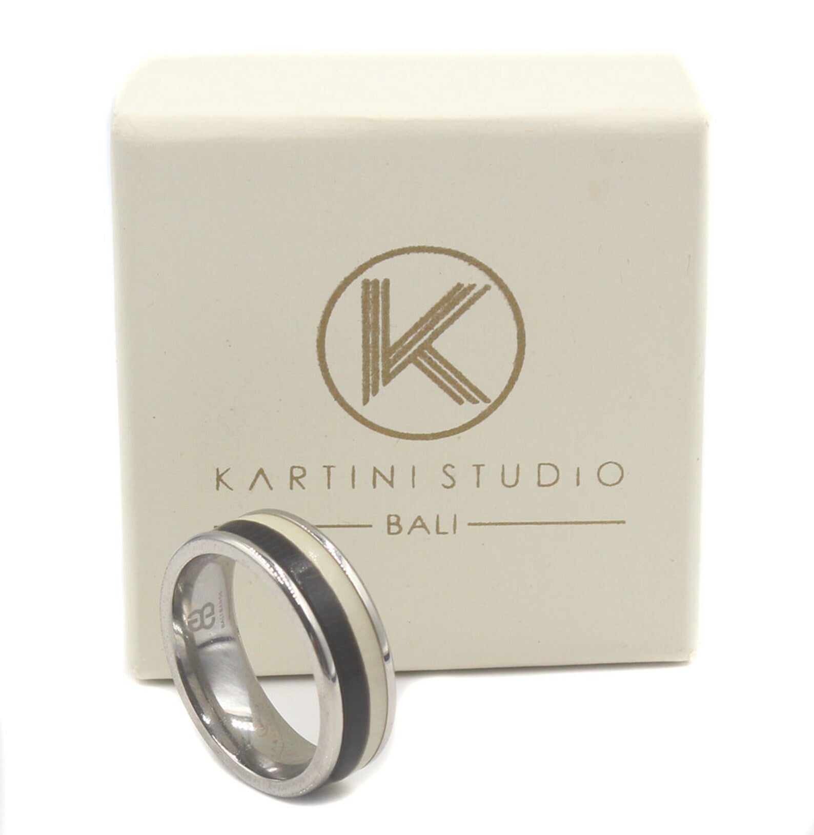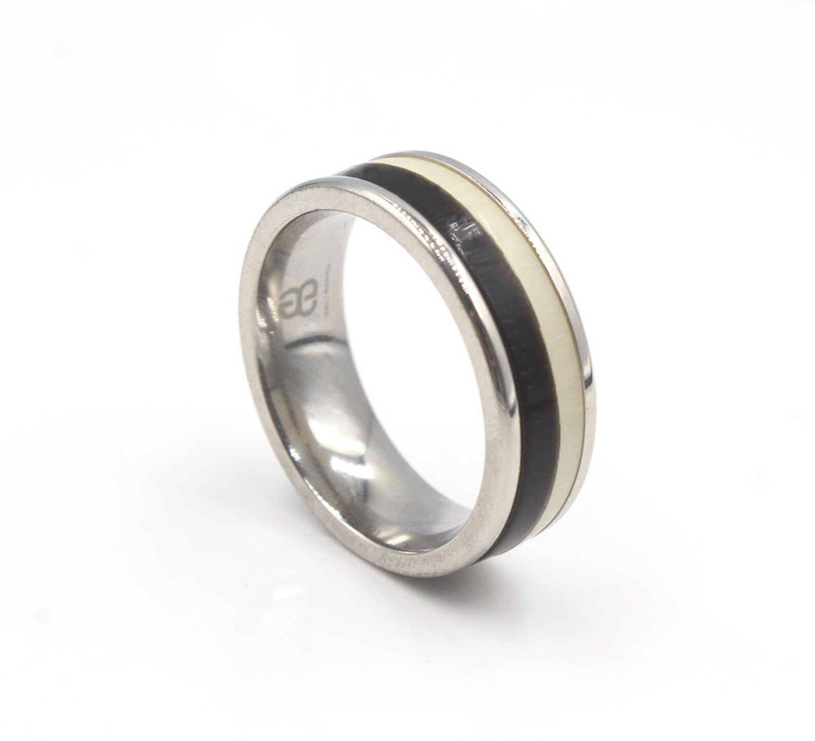 Ring aus schwarzem Büffelhorn und weißem Stierhorn