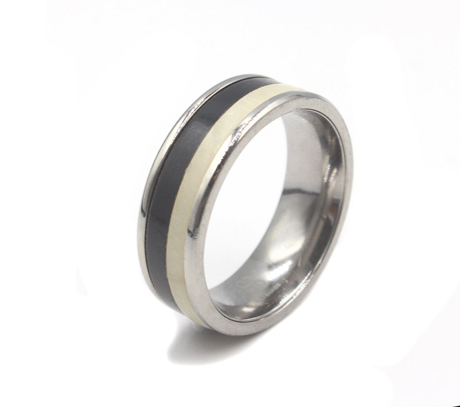 Dieser handgefertigte Herrenring aus Titan mit Inlay ist unser eigenes, einzigartiges Design.