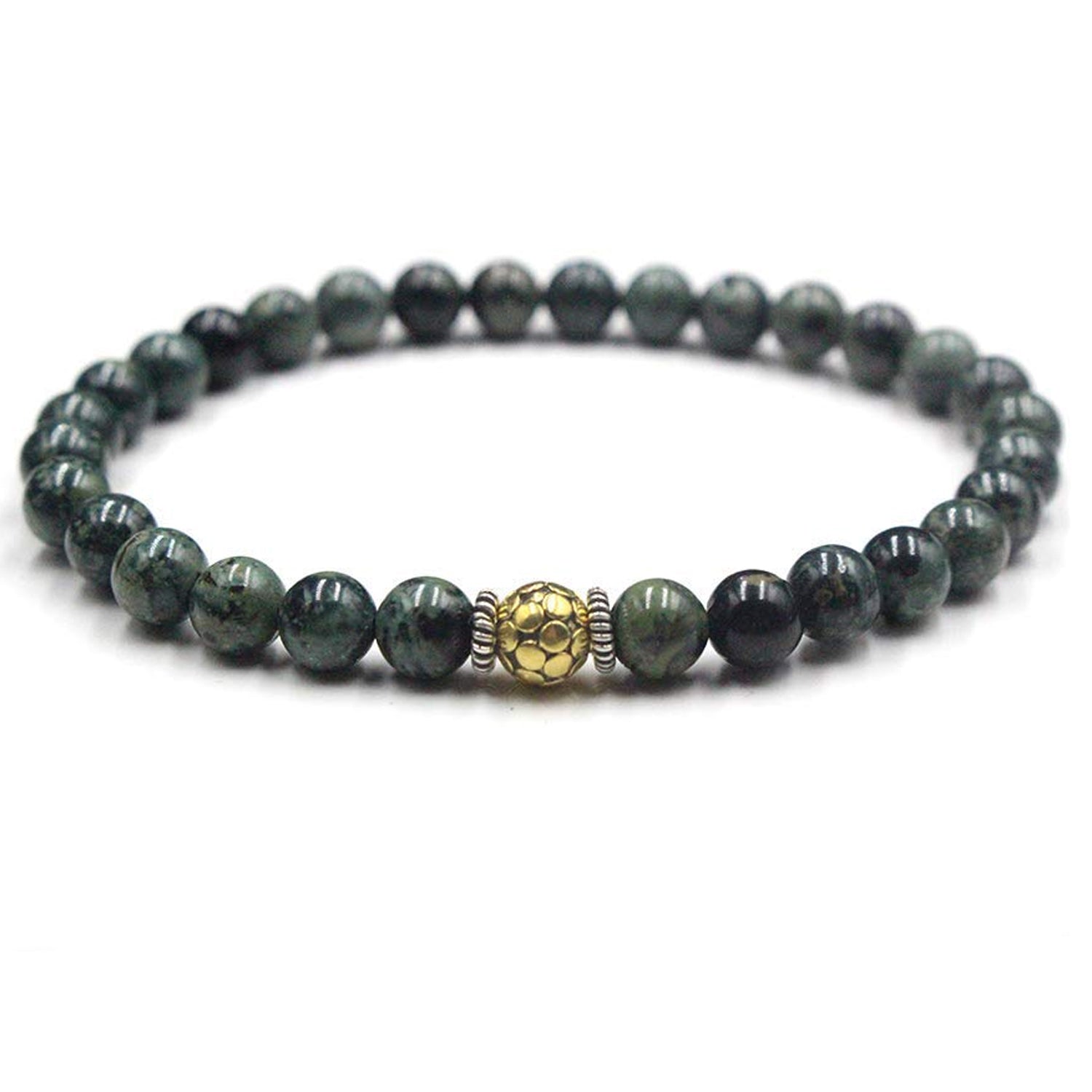 - Dieses Armband besteht aus 6 mm großen Perlen aus dunkelgrünem Nephrit-Jadestein, akzentuiert mit einer handgefertigten 6 mm großen „Punktperle“ aus 22 Karat vergoldetem Sterlingsilber und zwei Sterlingsilber-Abstandshaltern.
