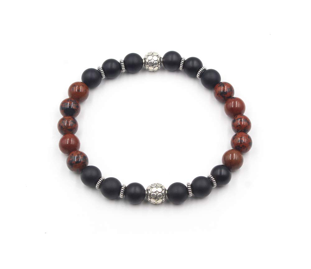 Mattes schwarzes Onyx, Mahagoni-Obsidian und Sterling-Silber-Armband, Perlenarmband für Herren