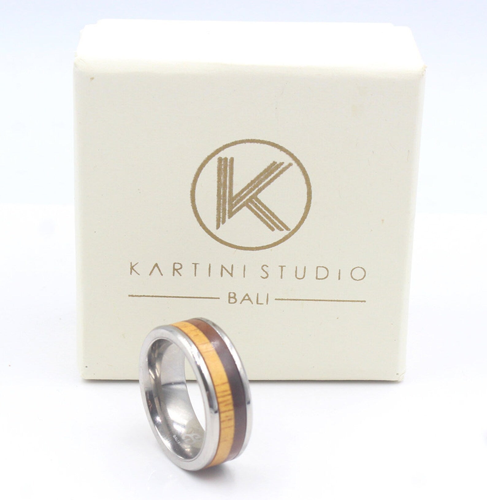 Dieser handgefertigte Herrenring aus Titan mit Inlay ist unser eigenes, einzigartiges Design.