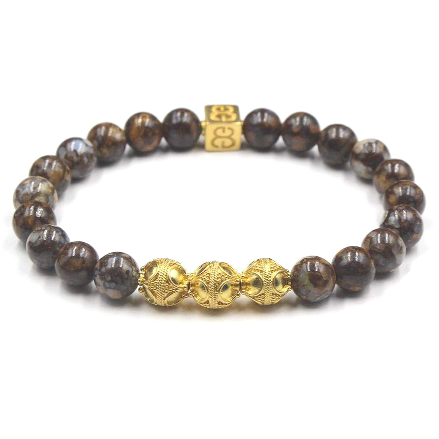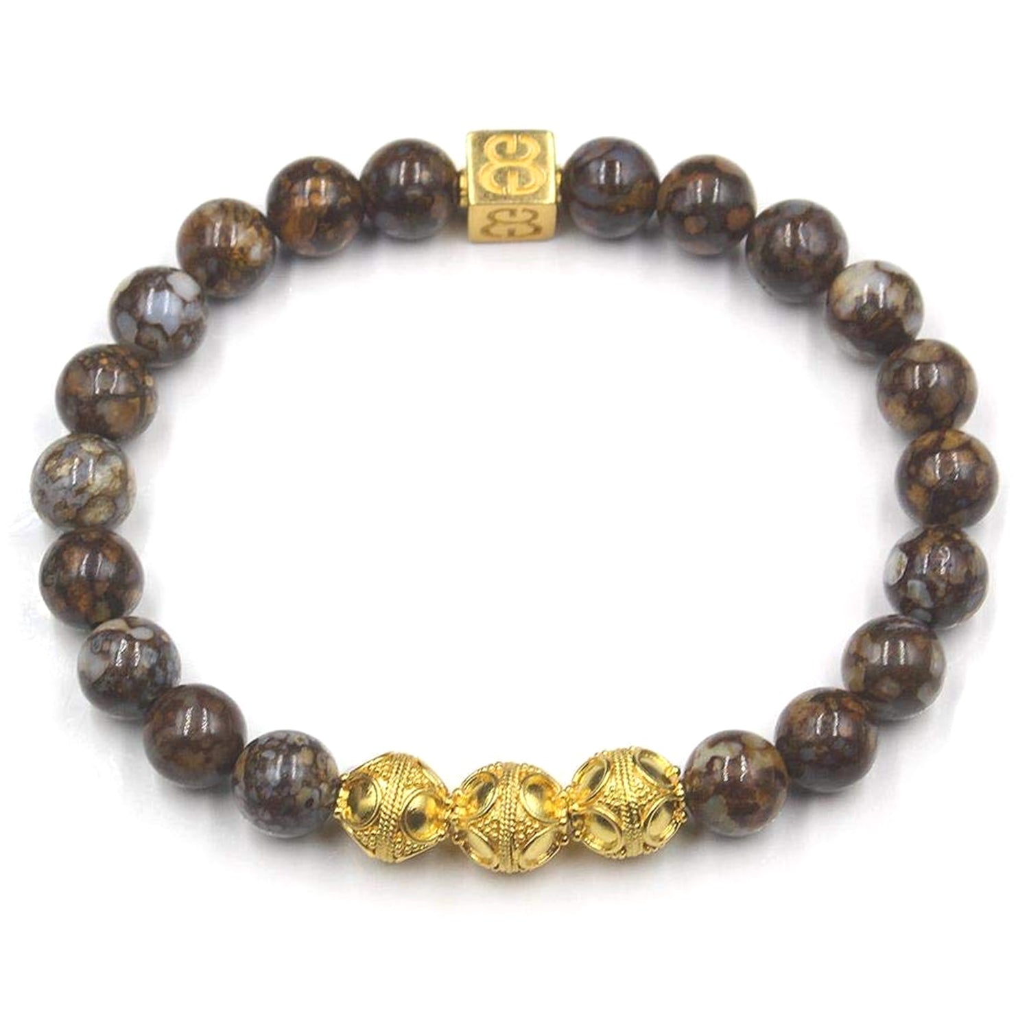 - Unsere Armbänder sind auf einer transparenten, hochspannungsfesten Kordel auf Silikonbasis befestigt, die für überragende Festigkeit und Haltbarkeit sorgt und jahrelang hält. Ihr Armband aus Ozeanjaspis und Sterlingsilber mit 22 Karat Goldauflage wird in einem Leinenbeutel geliefert.