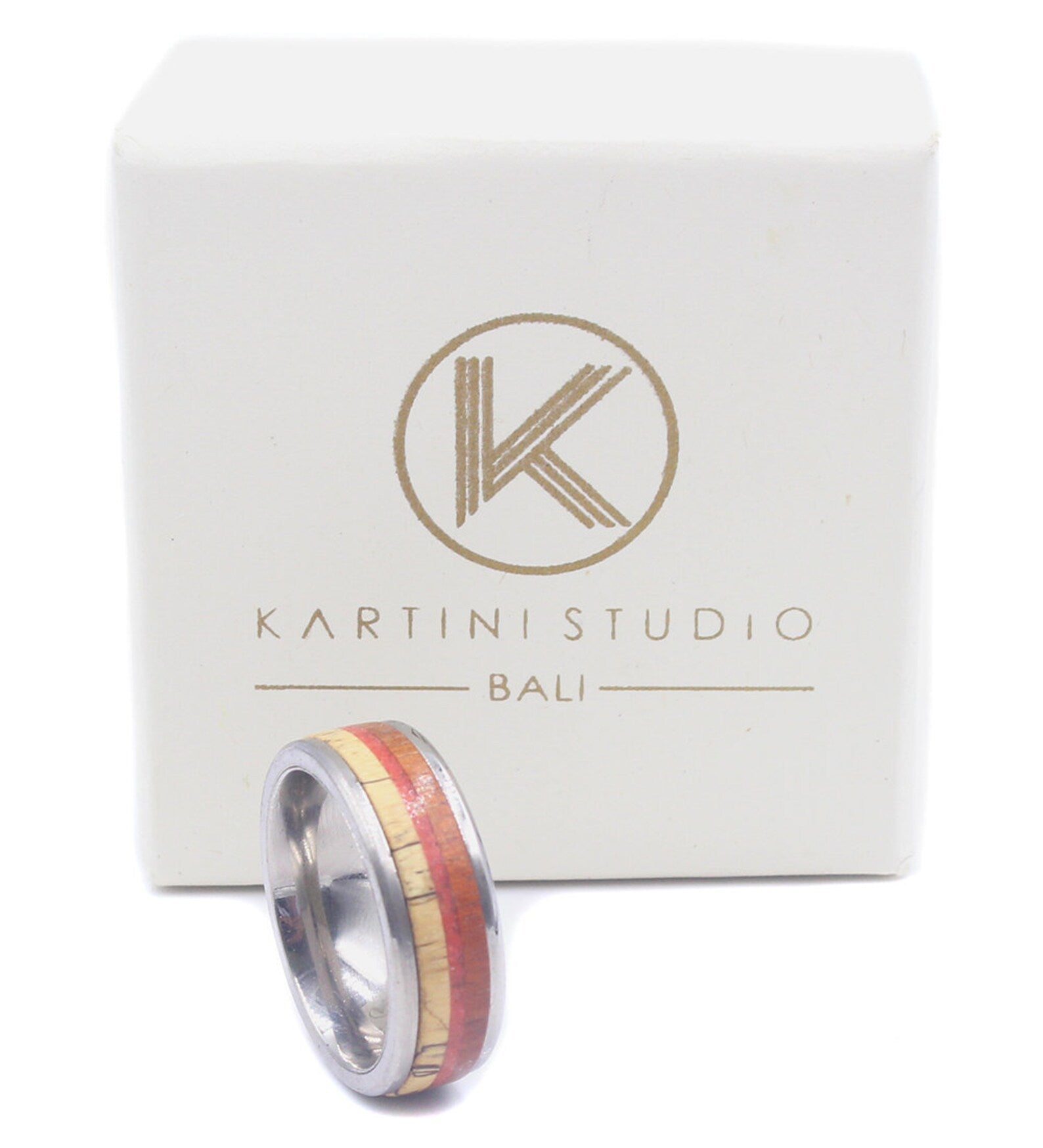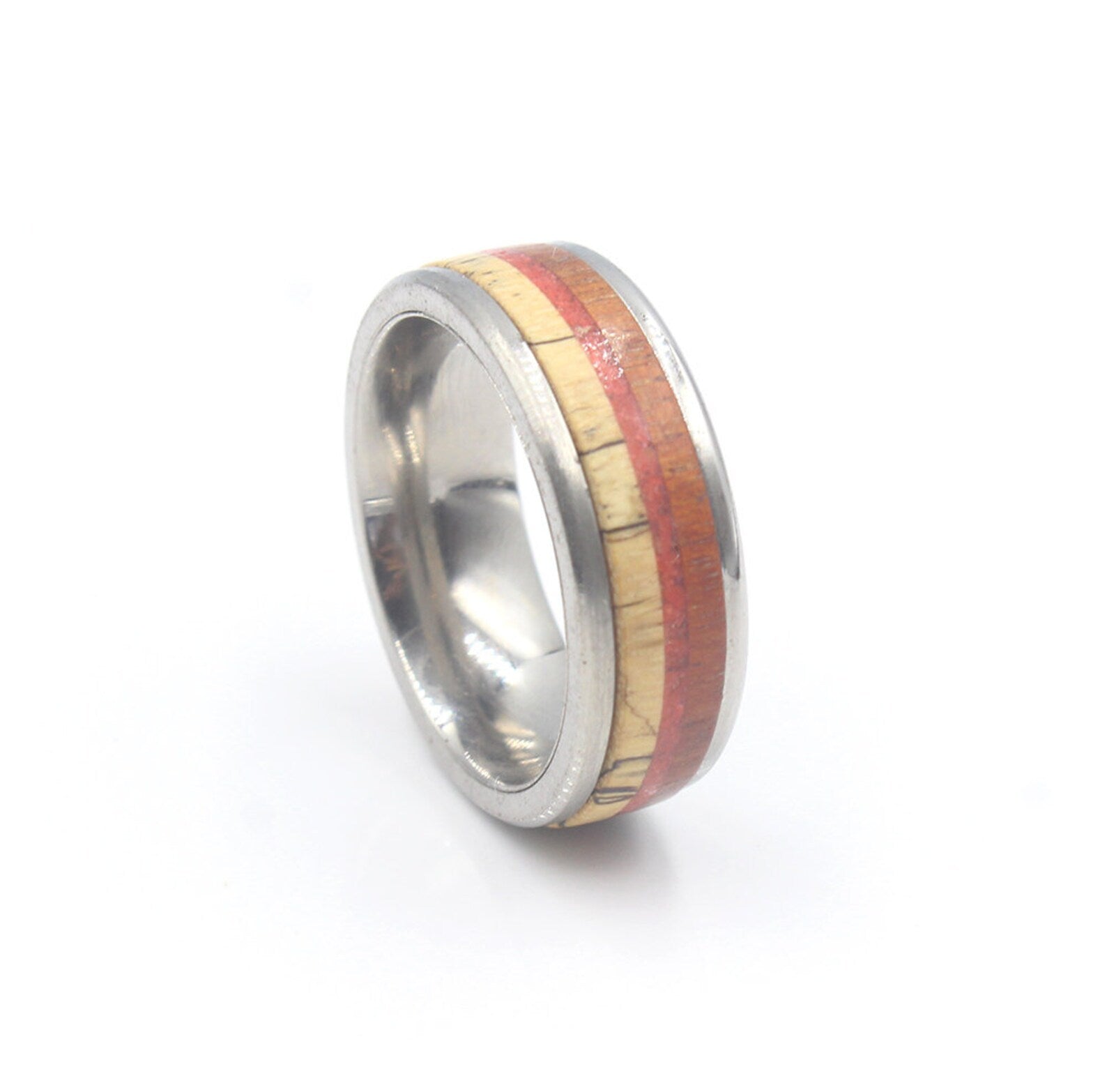 Ring aus rotem Jaspis, Rosenholz und gespaltenem Tamarindenholz