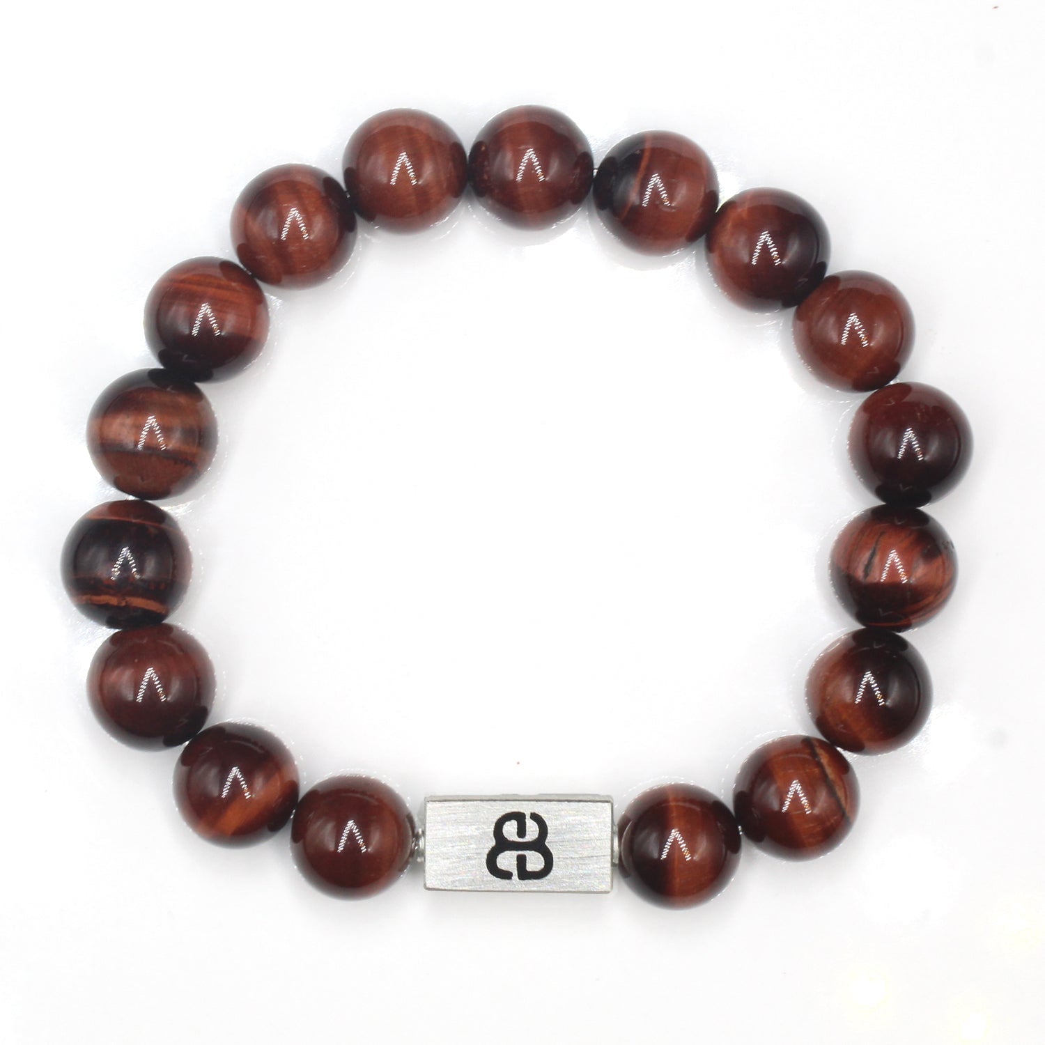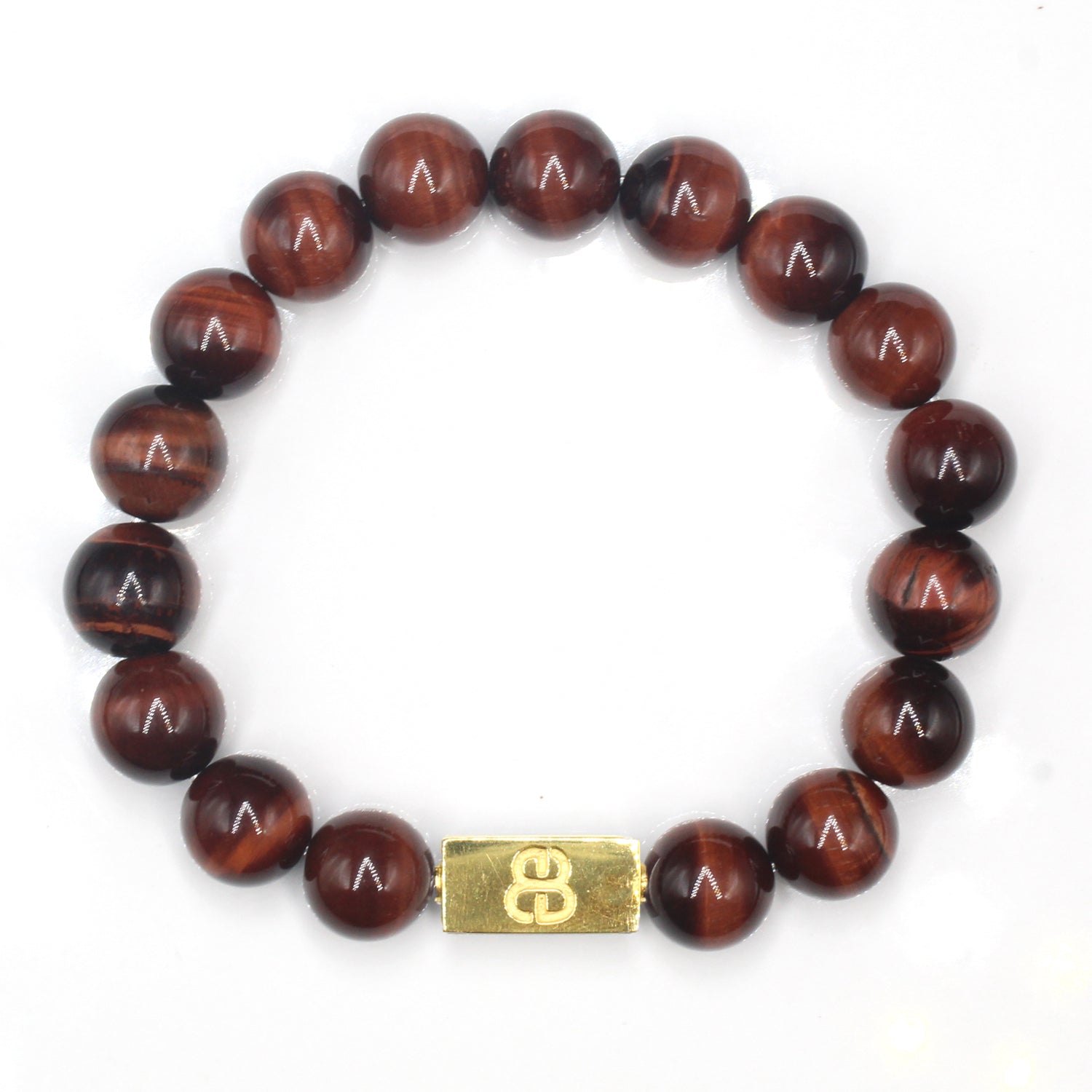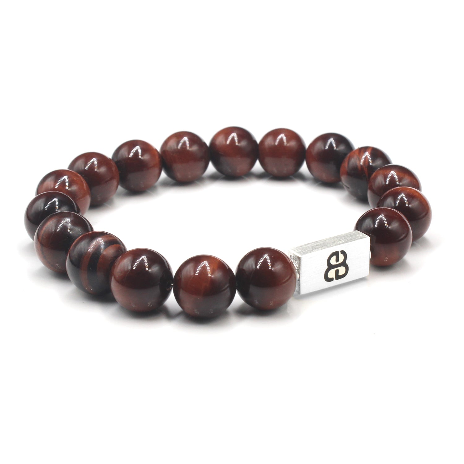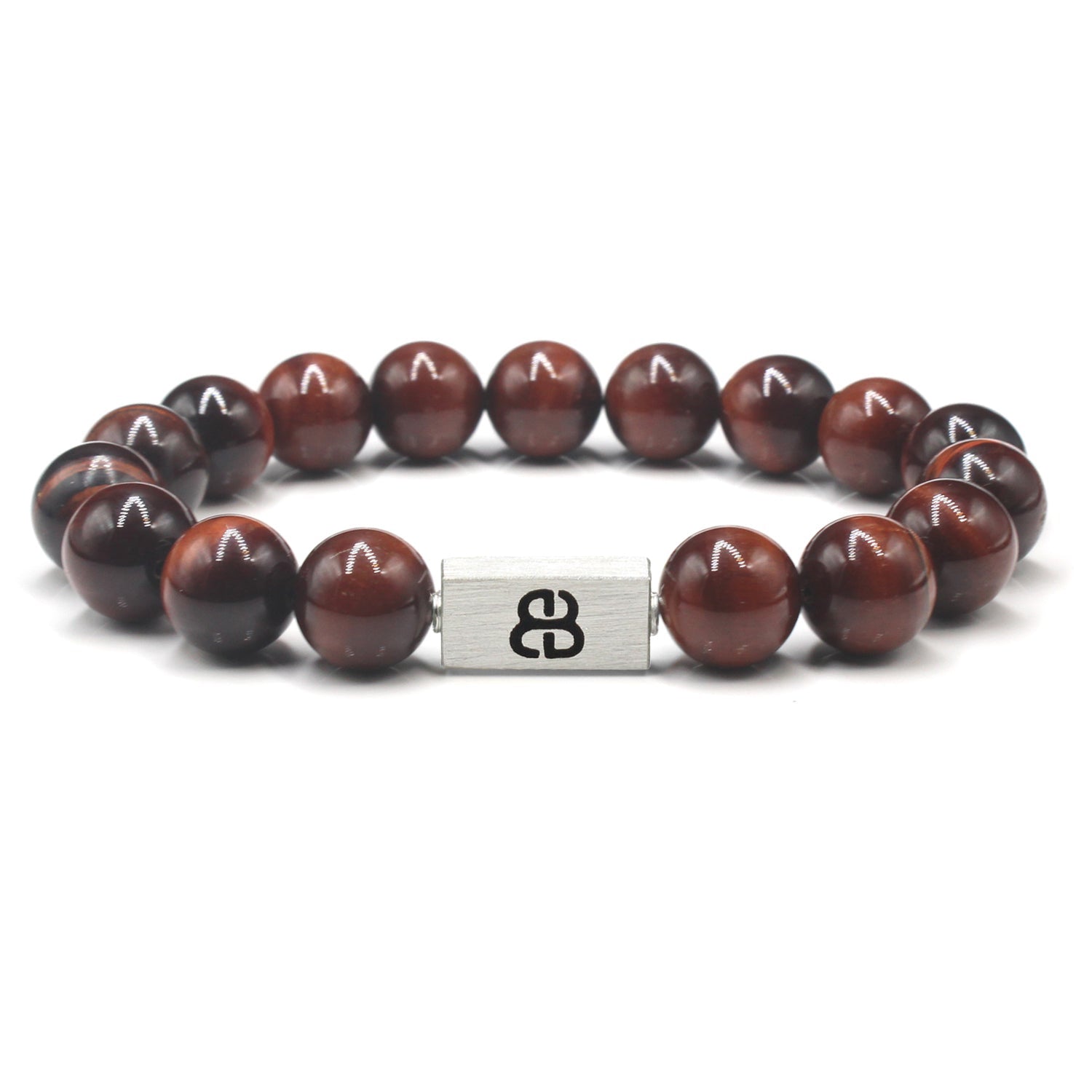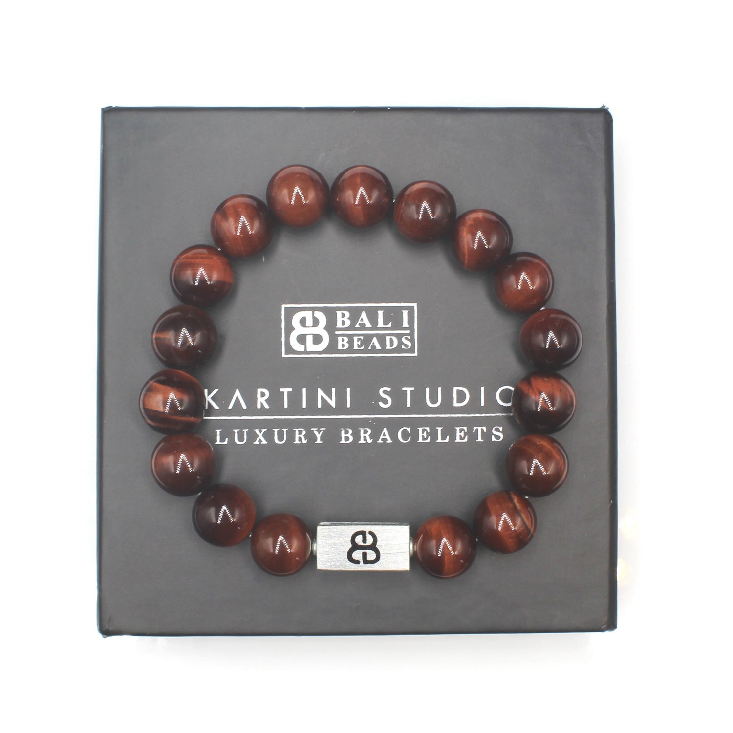 Dieses Armband besteht aus 12 mm großen Perlen aus rotem Tigerauge der Güteklasse A, akzentuiert durch eine 16 mm x 8 mm große Perle aus 22 Karat vergoldetem Sterlingsilber mit dem Logo „Bali Beads“. Wir verwenden Silikon-Stretchband für überragende Festigkeit. Ihr Armband wird in einer Geschenkbox geliefert.