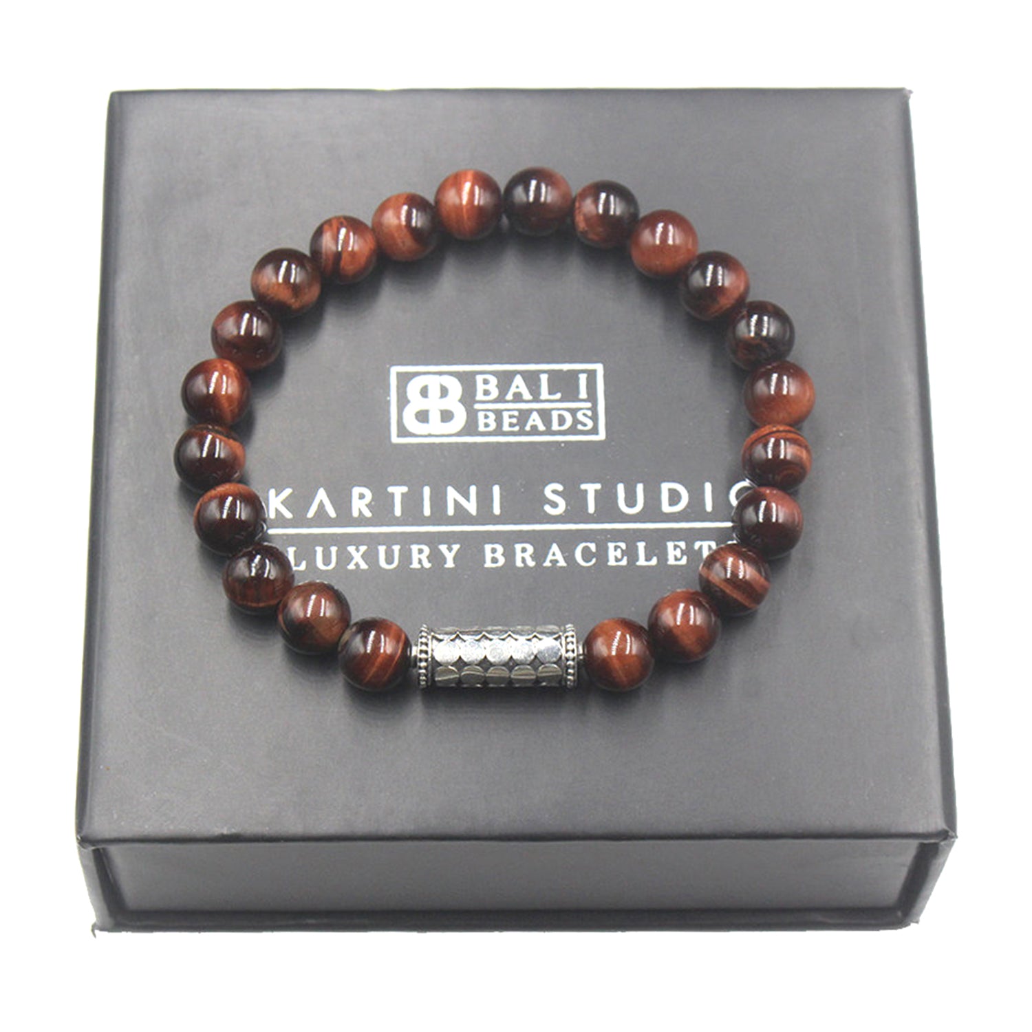 Dieses Armband besteht aus 8 mm großen roten Tigerauge-Edelsteinperlen, akzentuiert mit einer 18 mm großen, gehämmerten „Punkt“-Perle aus 925er Sterlingsilber, handgefertigt auf Bali. Wir verwenden Silikon-Stretchband für höchste Festigkeit. Wählen Sie Ihre Handgelenkgröße aus dem Dropdown-Menü. Ihr Armband wird in einer Armband-Geschenkbox geliefert.
