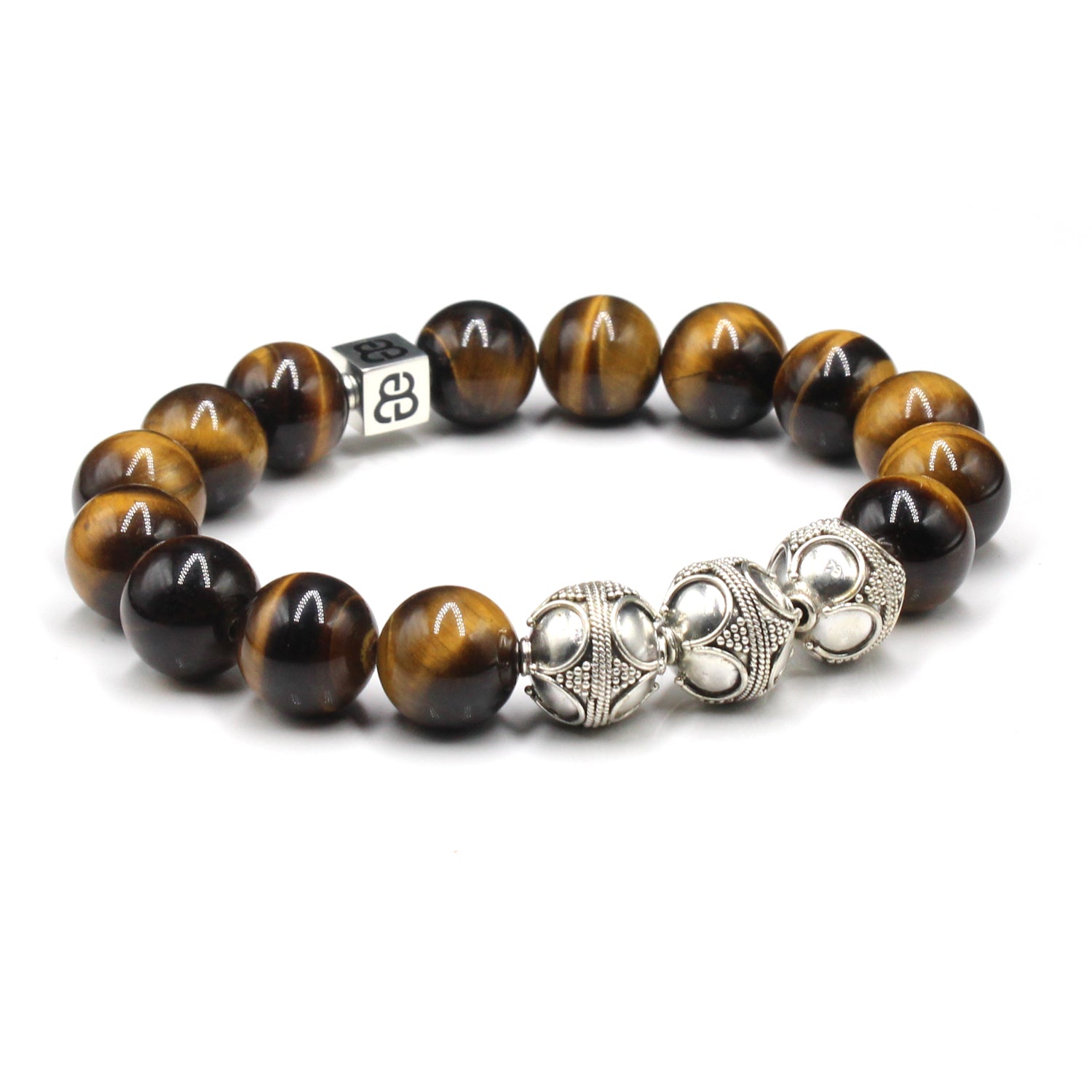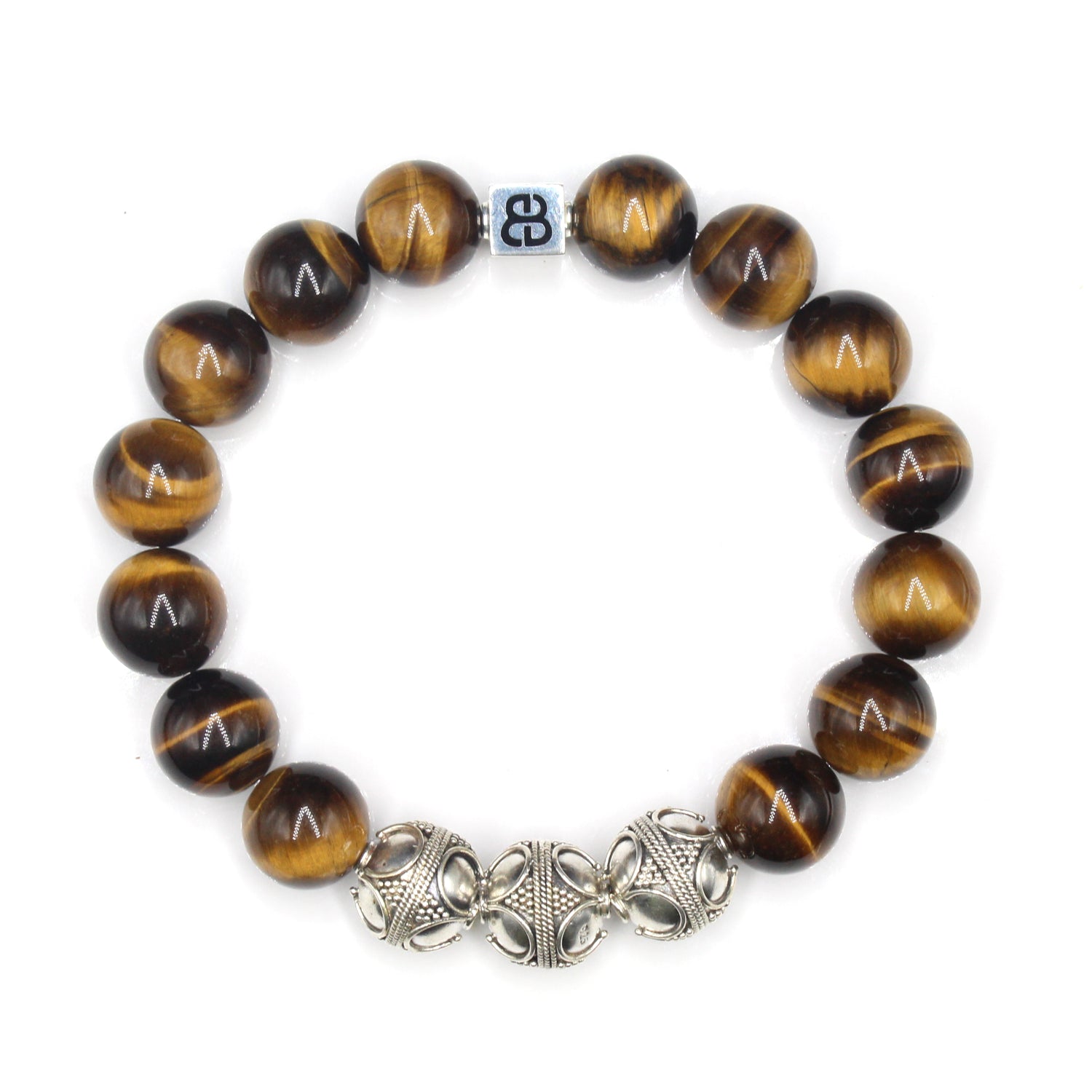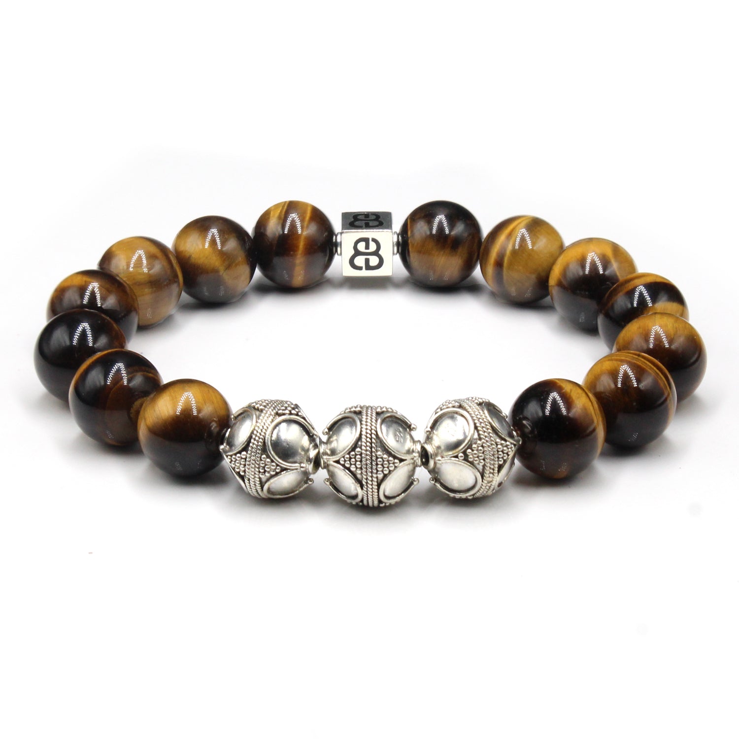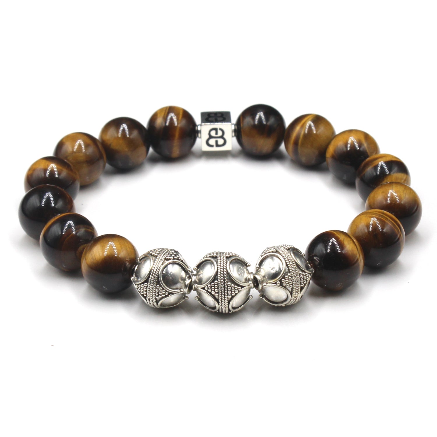 - Dieses Herrenarmband in Premiumqualität besteht aus 12 mm großen Tigerauge-Perlen der Güteklasse A, akzentuiert mit drei handgefertigten 12 mm großen Bali-Perlen aus Sterlingsilber und einer 8 mm x 8 mm großen Sterlingsilber-Perle mit dem „Bali Beads“-Logo.