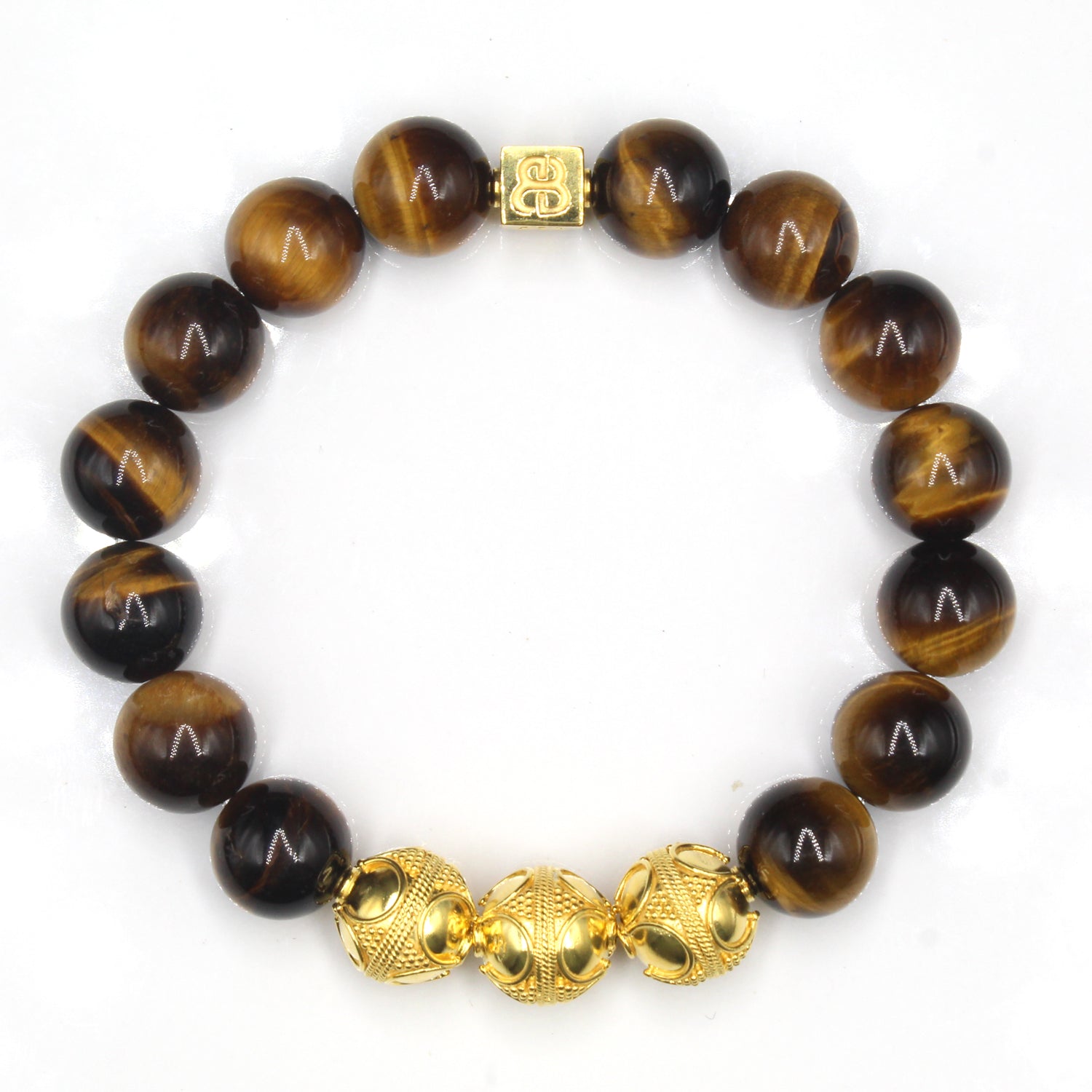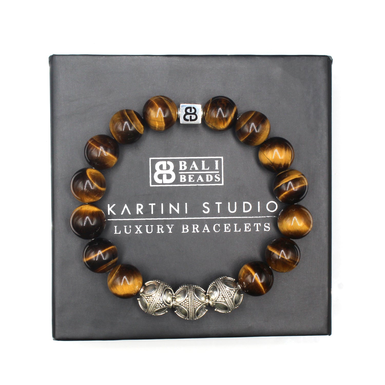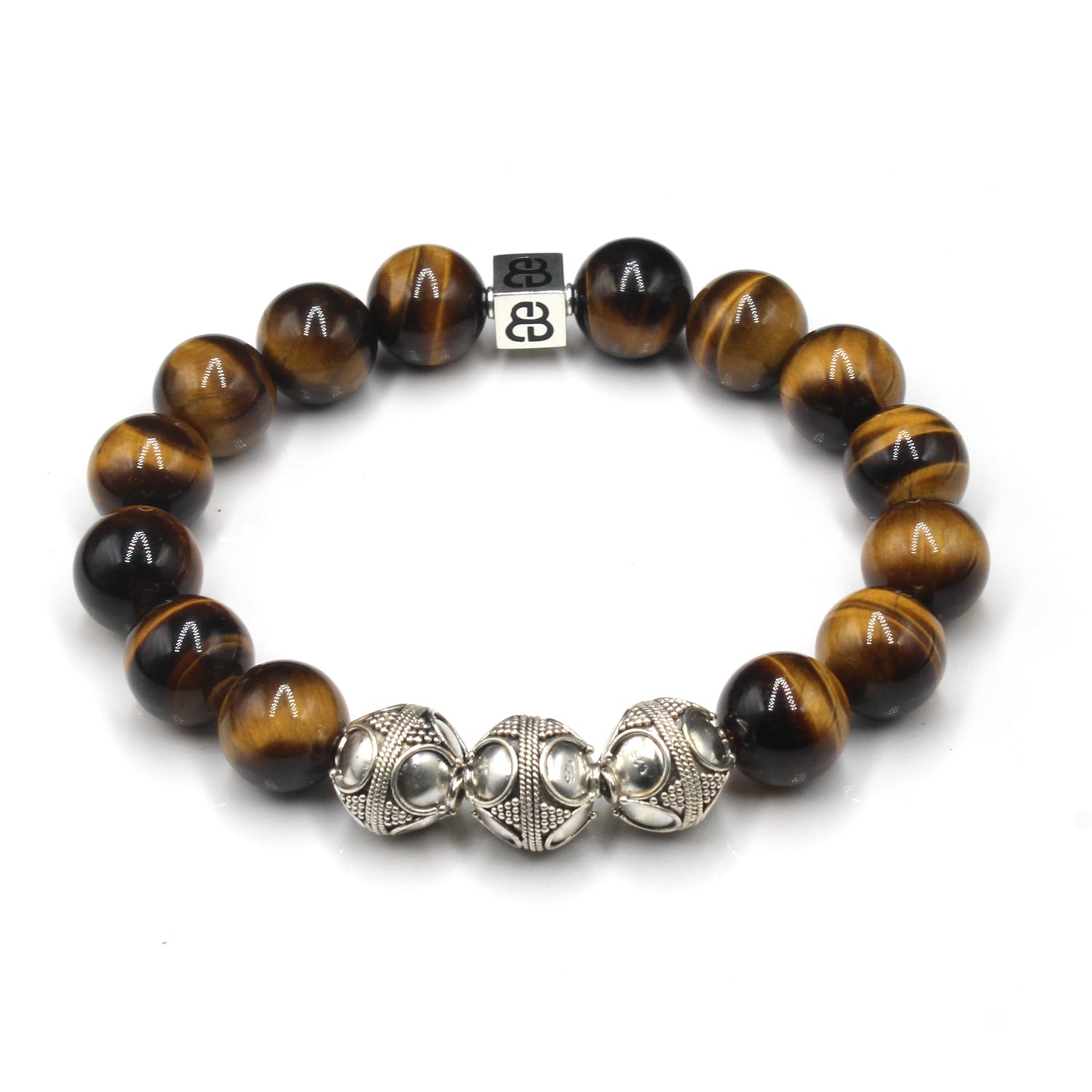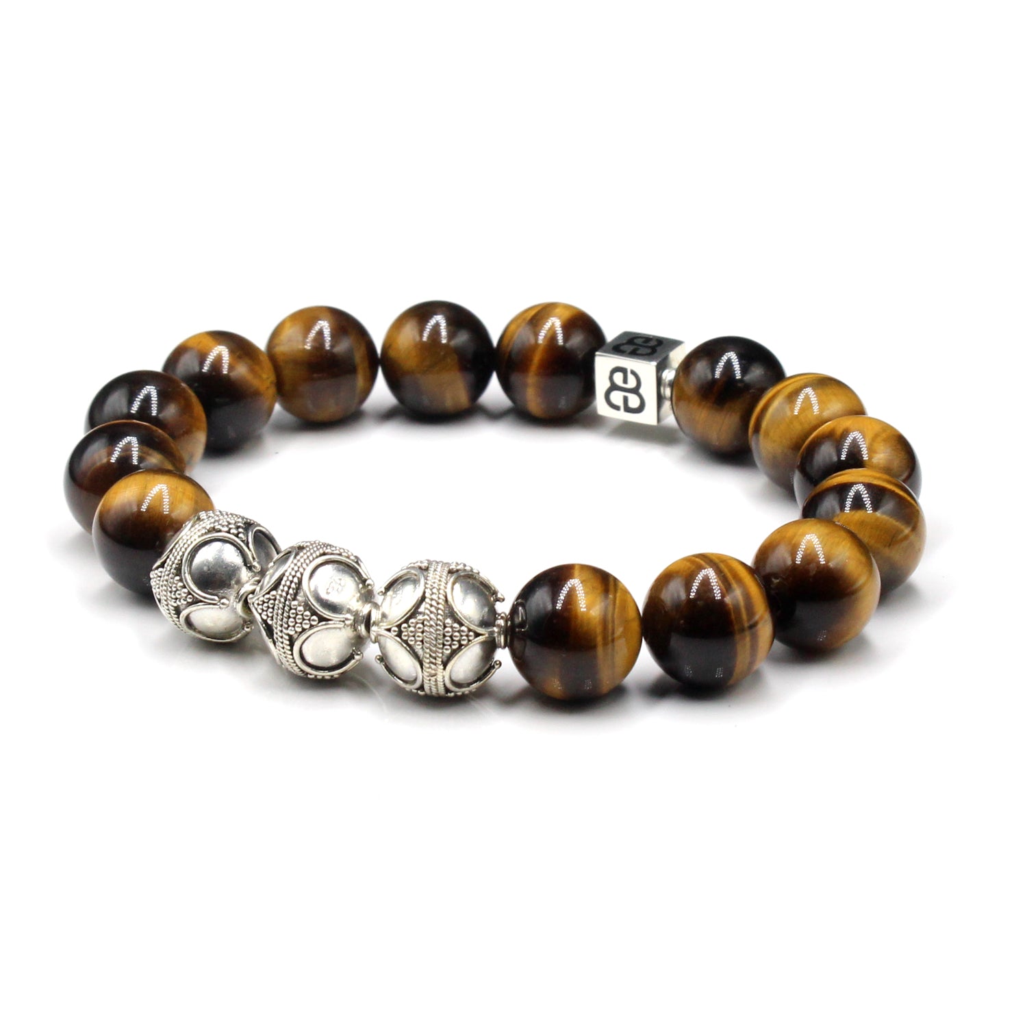 - Dieses Herrenarmband in Premiumqualität besteht aus 12 mm großen Tigerauge-Perlen der Güteklasse A, akzentuiert mit drei handgefertigten 12 mm großen Bali-Perlen aus Sterlingsilber und einer 8 mm x 8 mm großen Sterlingsilber-Perle mit dem „Bali Beads“-Logo.