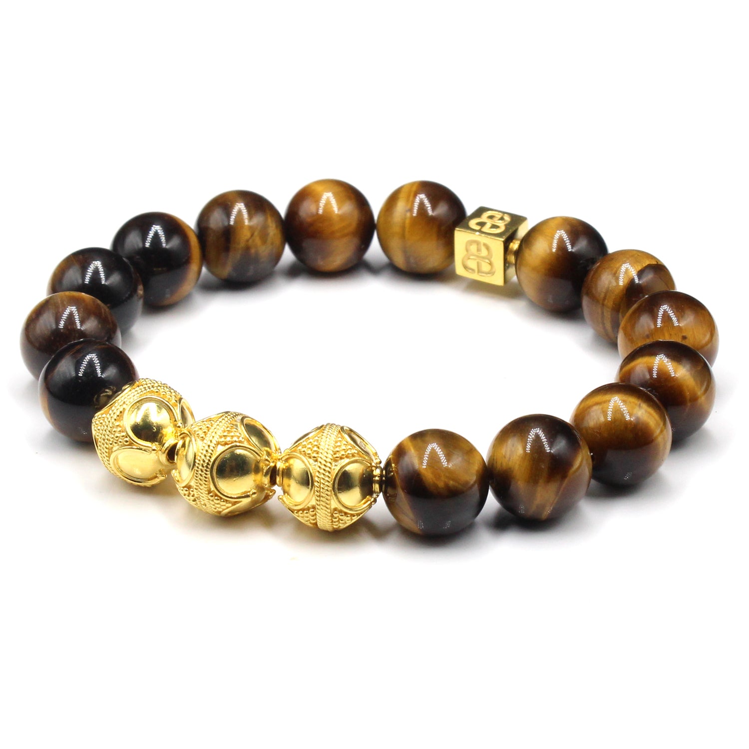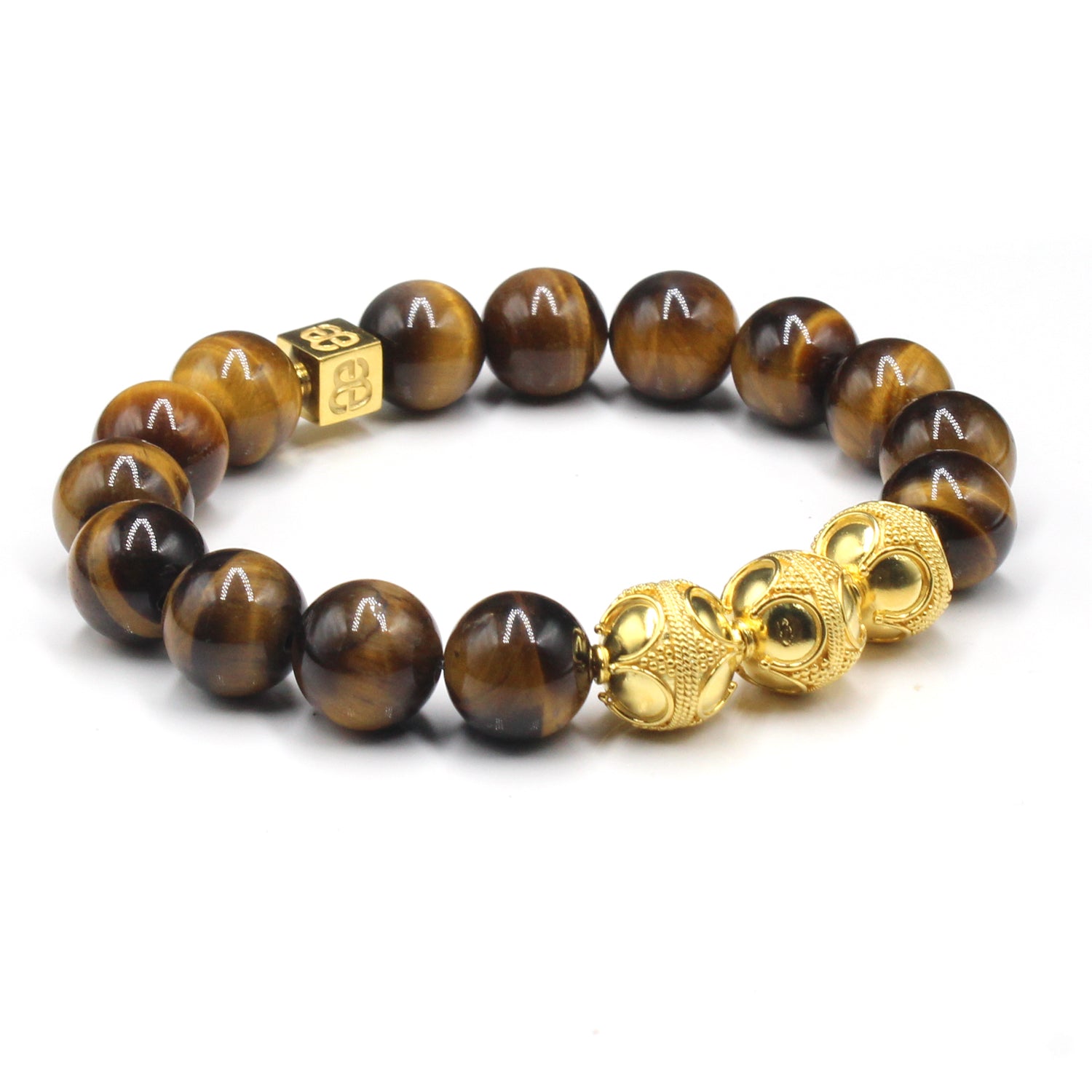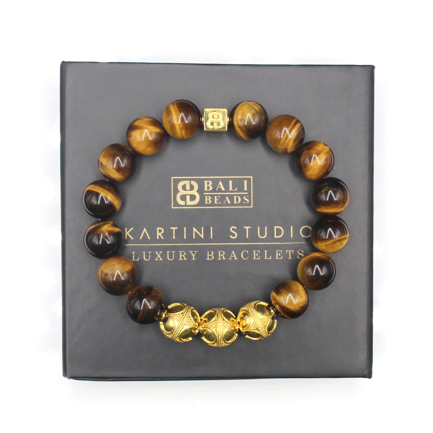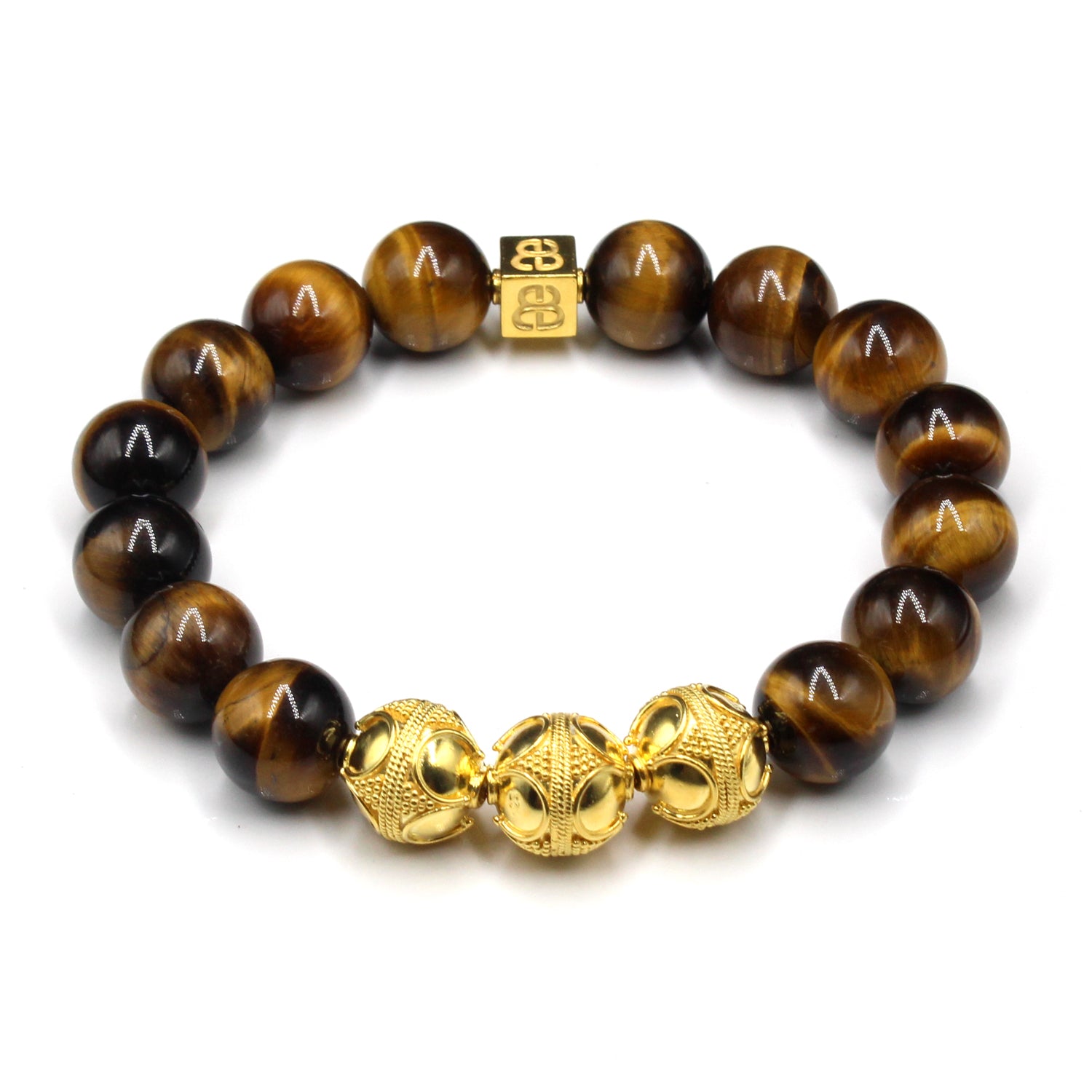 - Dieses Herrenarmband in Premiumqualität besteht aus 12 mm großen Tigerauge-Perlen der Güteklasse A, akzentuiert mit drei handgefertigten 12 mm großen Bali-Perlen aus Sterlingsilber und einer 8 mm x 8 mm großen Sterlingsilber-Perle mit dem „Bali Beads“-Logo.