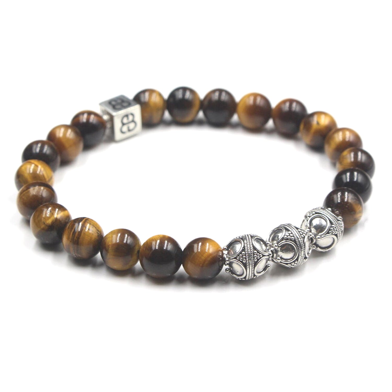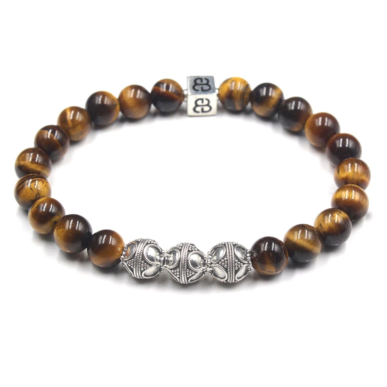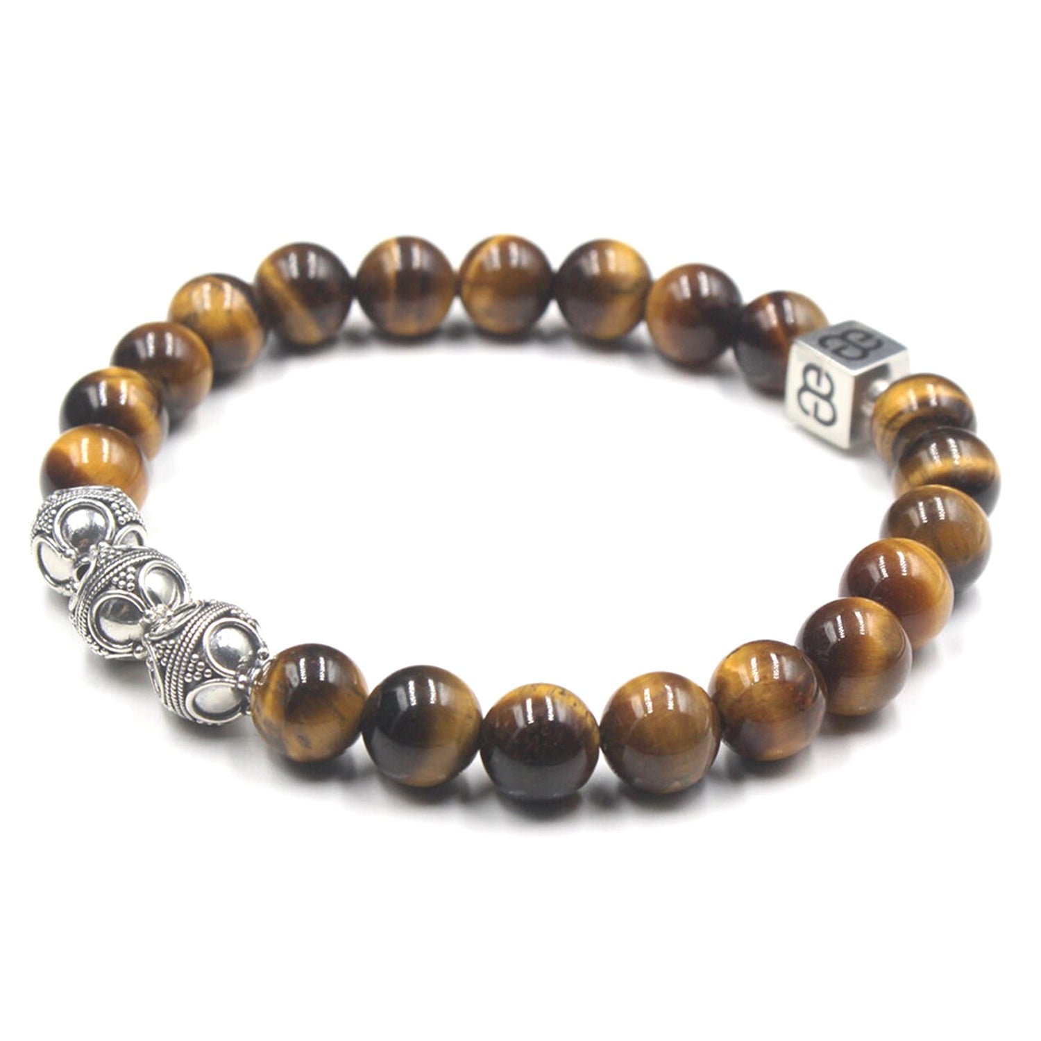 Dieses Luxusarmband für Herren besteht aus 8 mm großen Perlen aus gelbem Tigerauge, akzentuiert durch drei 8 mm große Bali-Perlen aus Sterlingsilber und eine 8 mm x 8 mm große Ankerperle „Bali Beads“. Wir verwenden ein 1 mm dickes Silikon-Stretchband für überragende Festigkeit und Belastbarkeit.