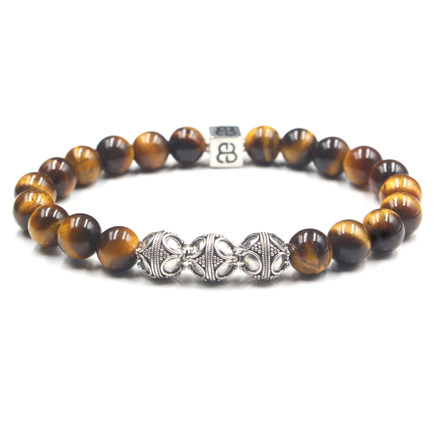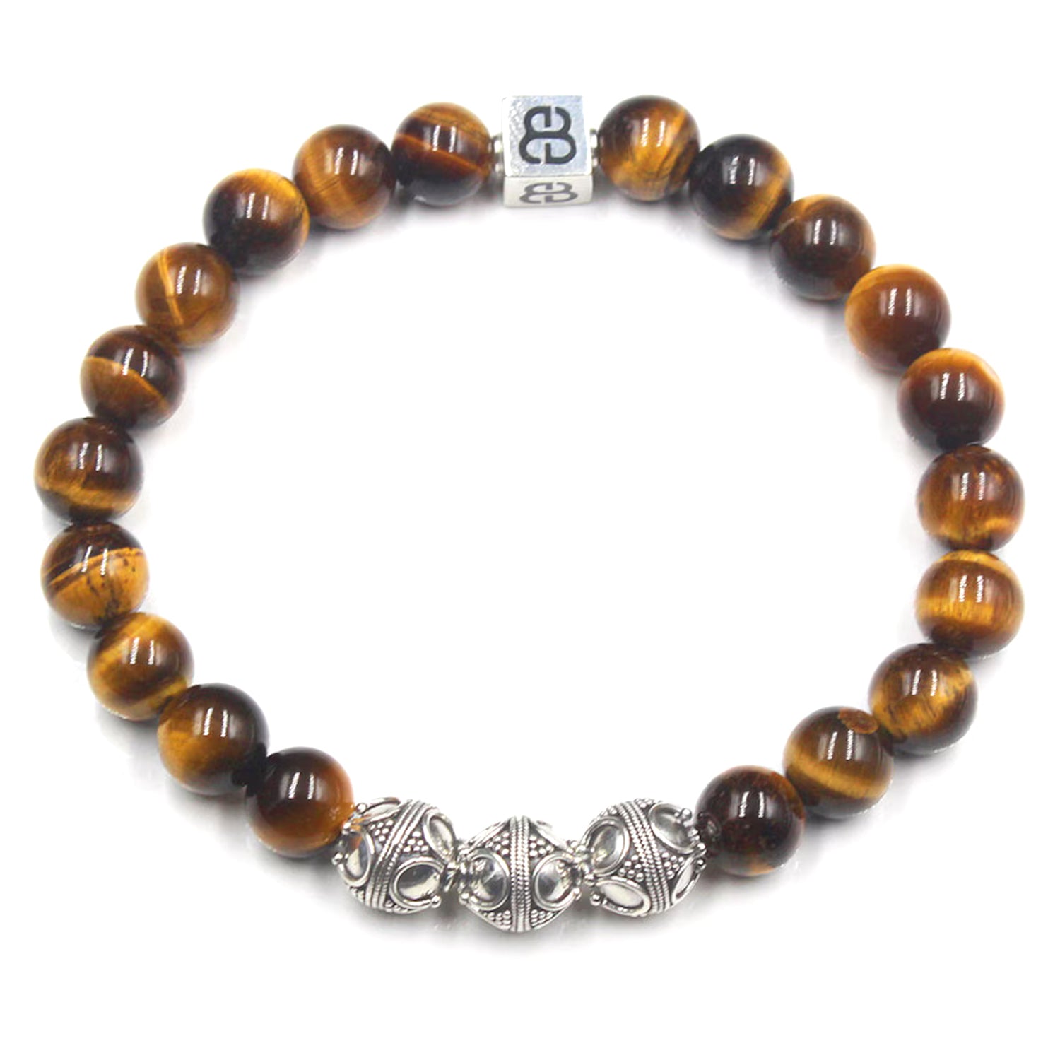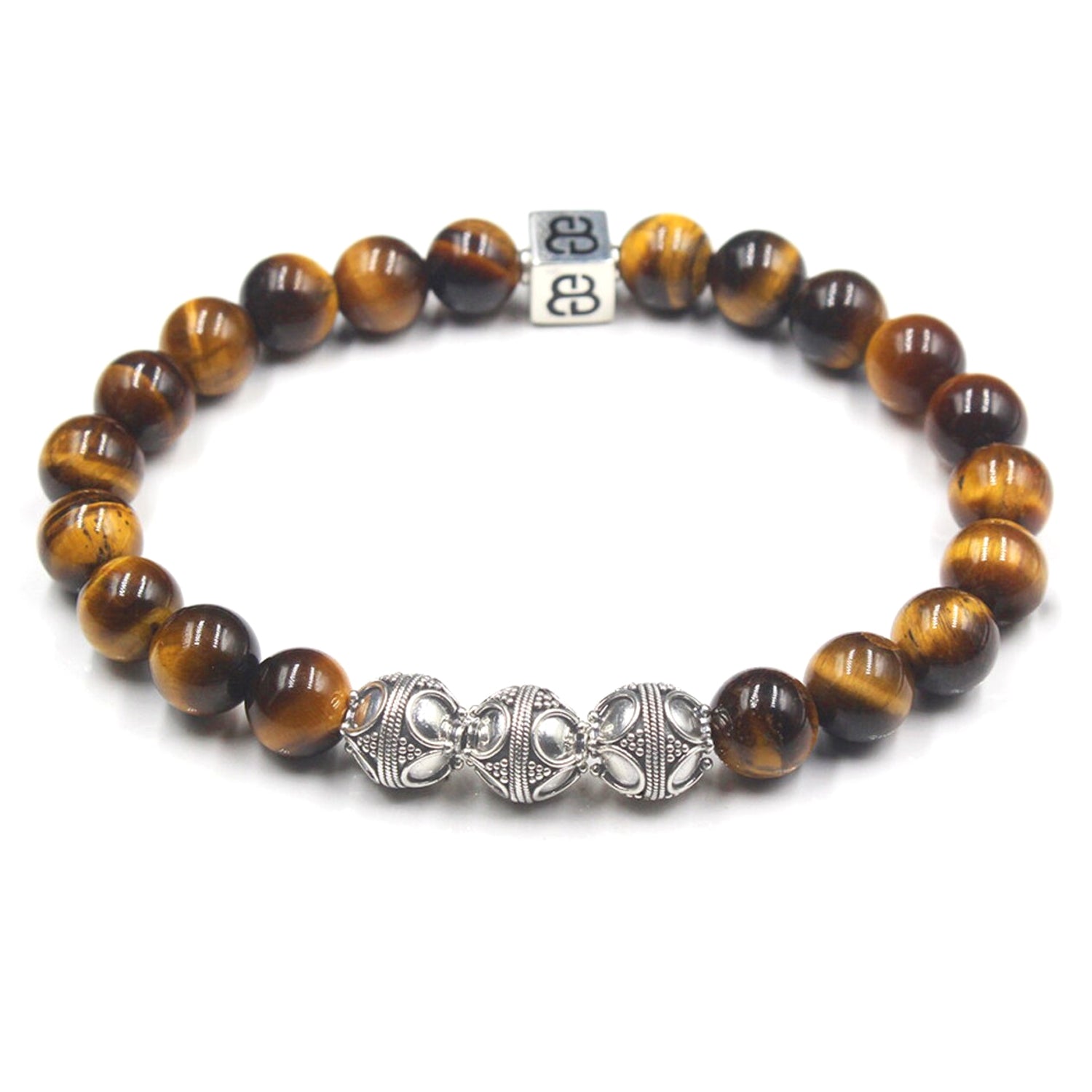 Dieses Luxusarmband für Herren besteht aus 8 mm großen Perlen aus gelbem Tigerauge, akzentuiert durch drei 8 mm große Bali-Perlen aus Sterlingsilber und eine 8 mm x 8 mm große Ankerperle „Bali Beads“. Wir verwenden ein 1 mm dickes Silikon-Stretchband für überragende Festigkeit und Belastbarkeit.