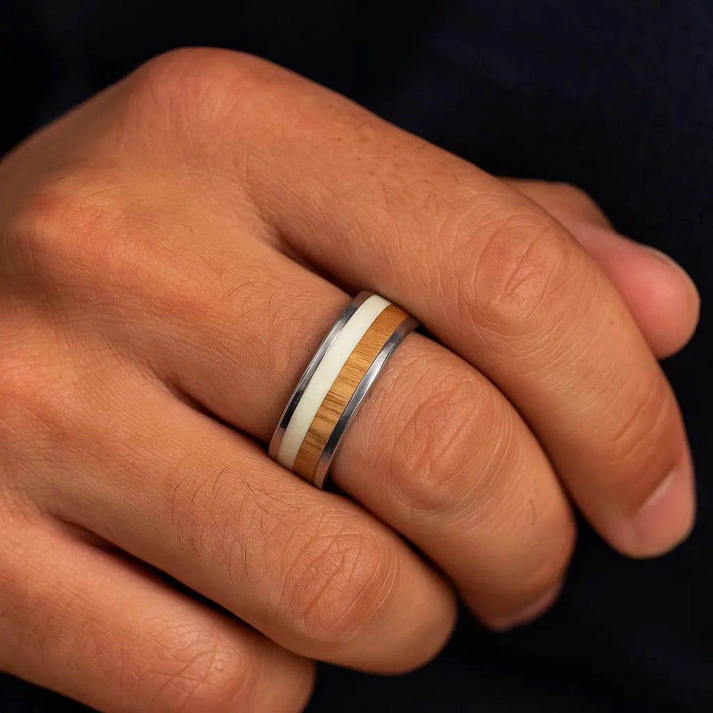 Dieser handgefertigte Herrenring aus Titan mit Inlay ist unser eigenes, einzigartiges Design.