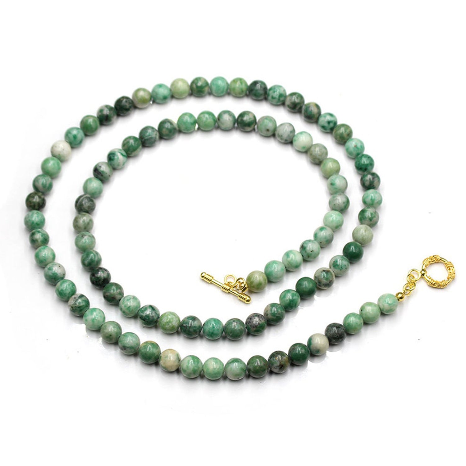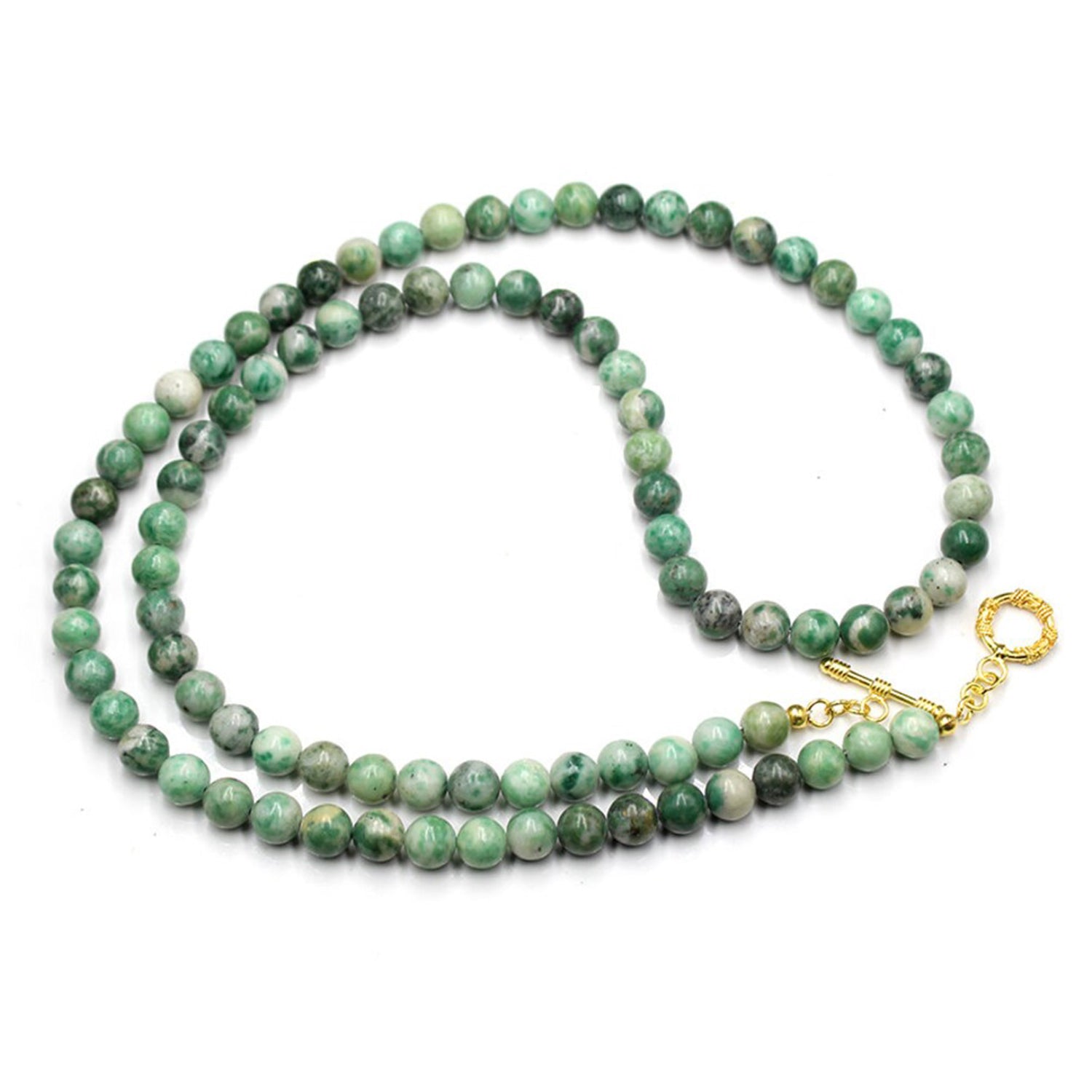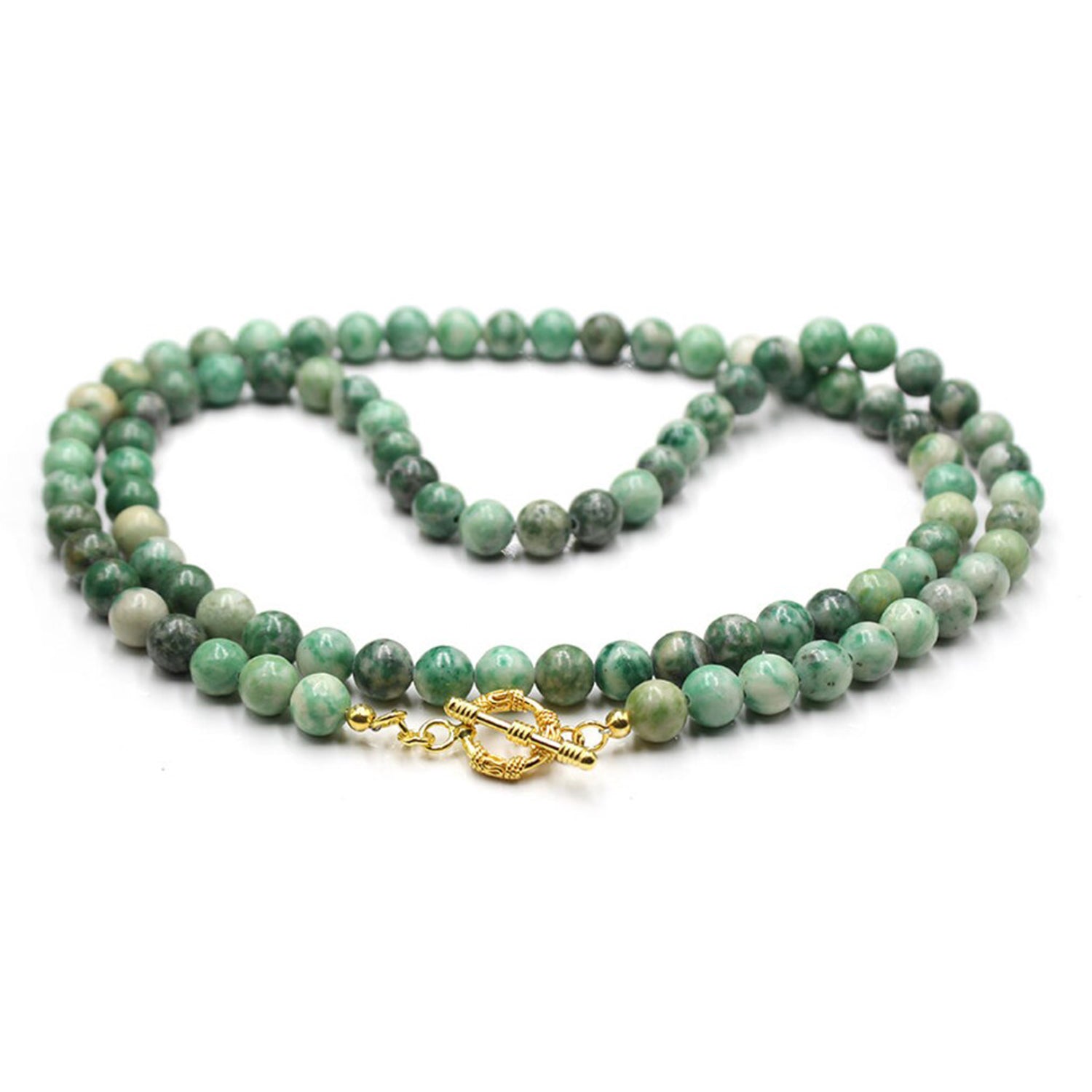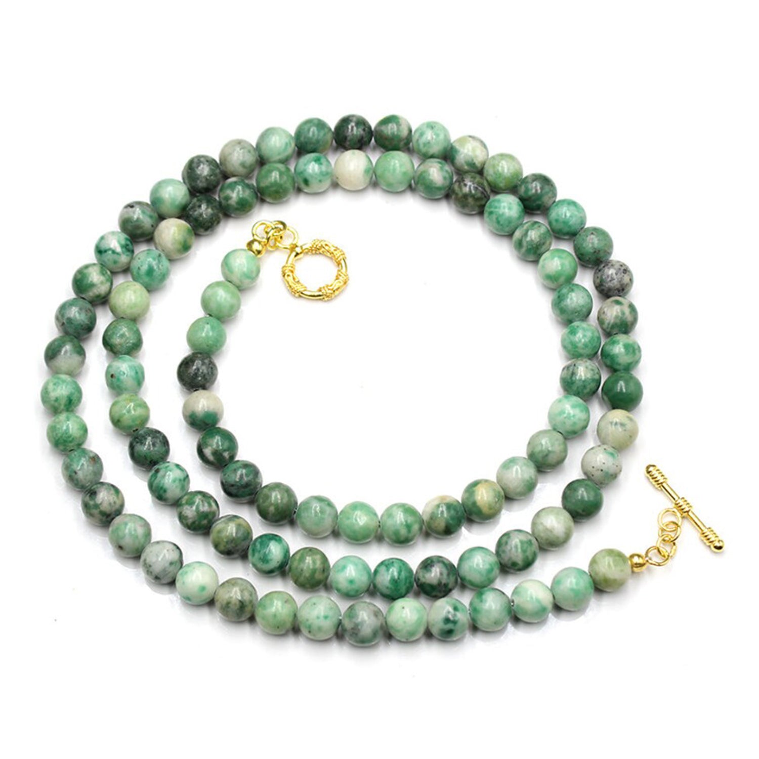 This necklace features 8mm Qinghai jade beads strung on a durbale stainless steel wire.