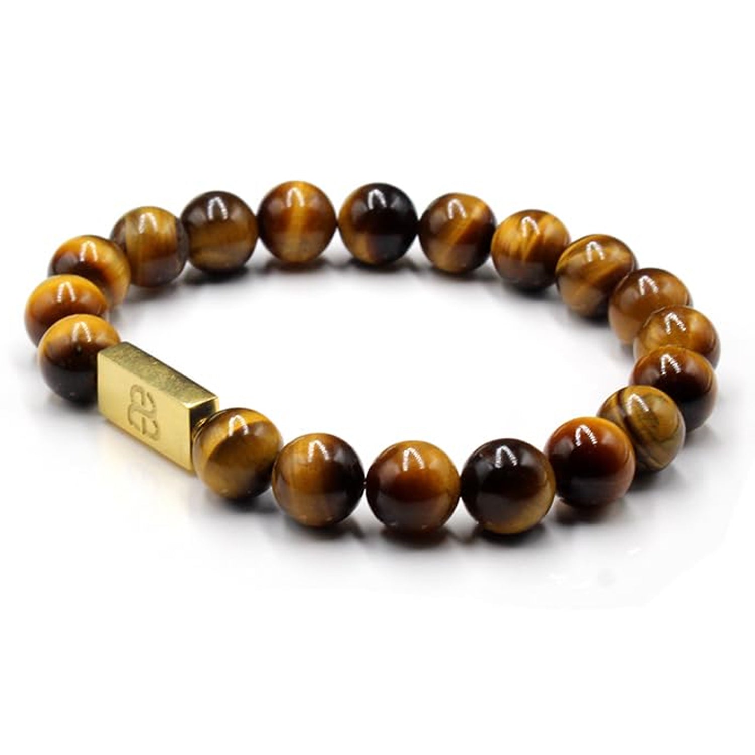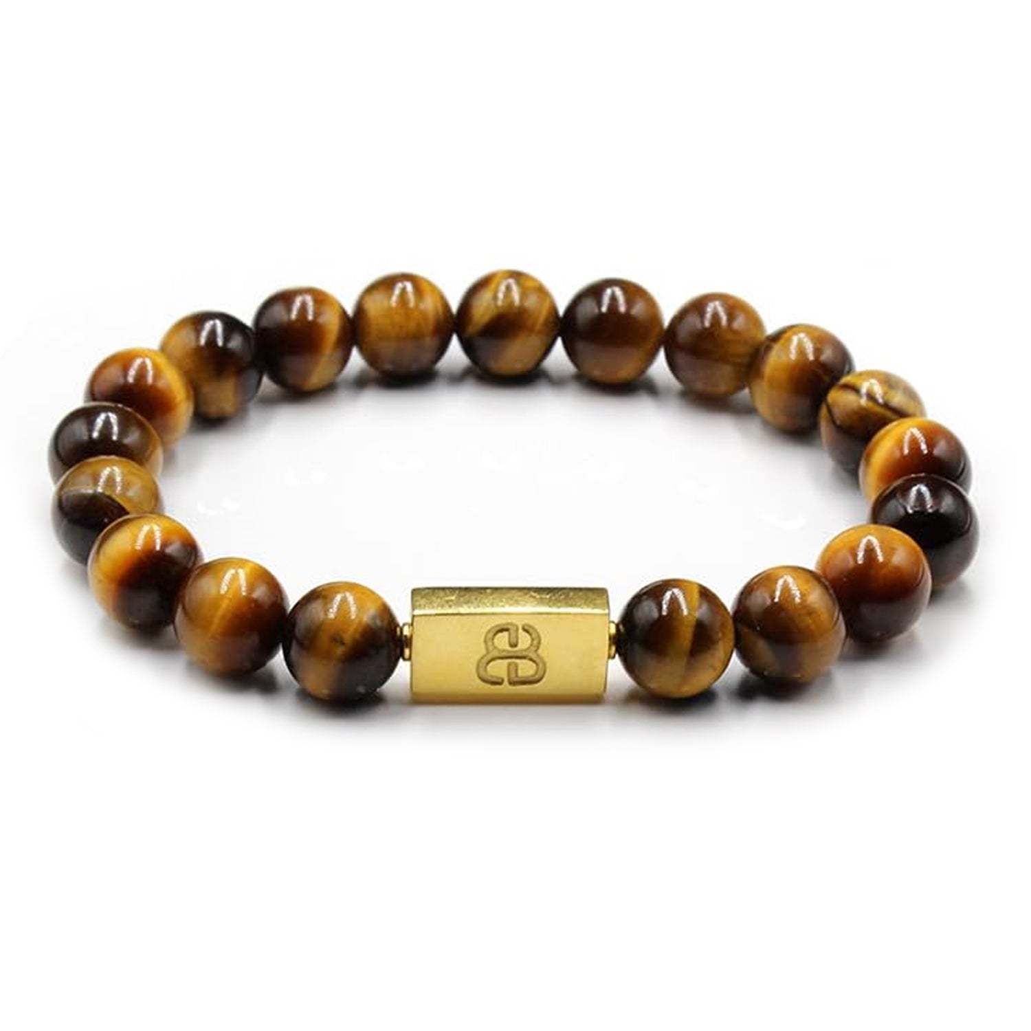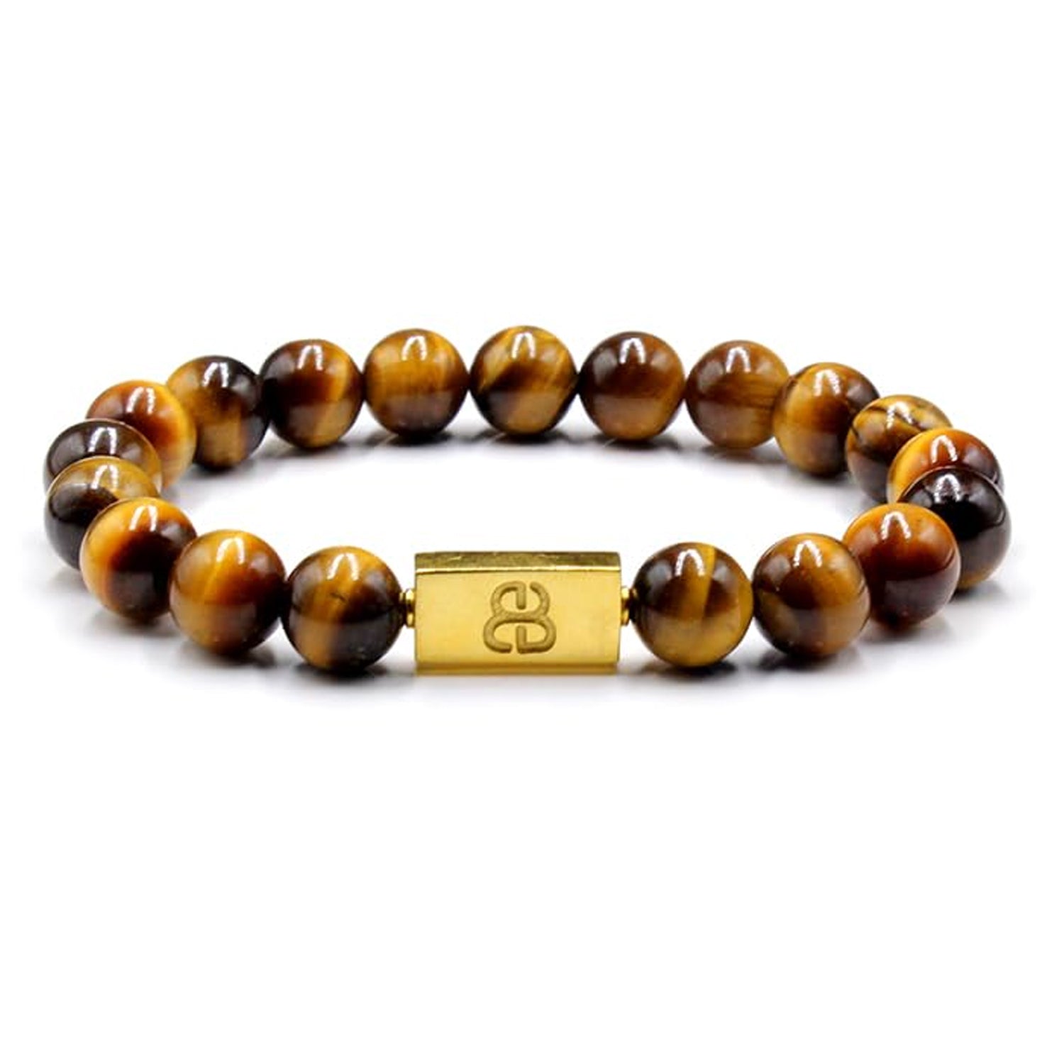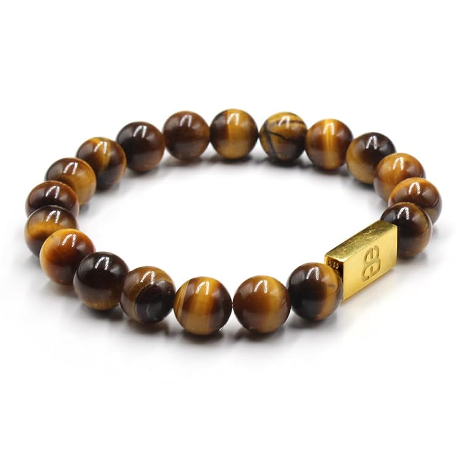 Our bracelets are strung on a high tension silicon-based clear cord for superior strength and durability that lasts for years. This tiger's eye and gold bracelet comes in a bracelet gift box.