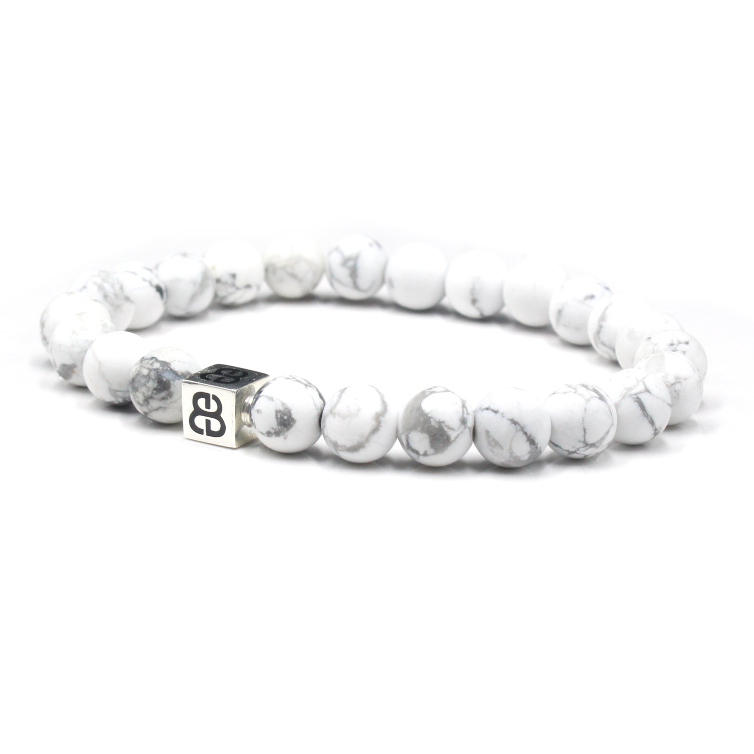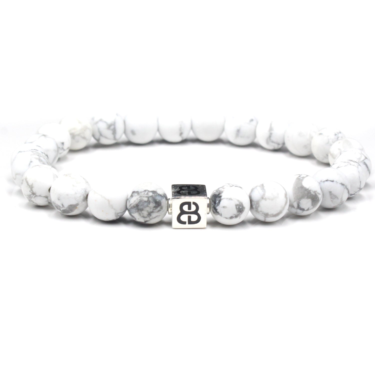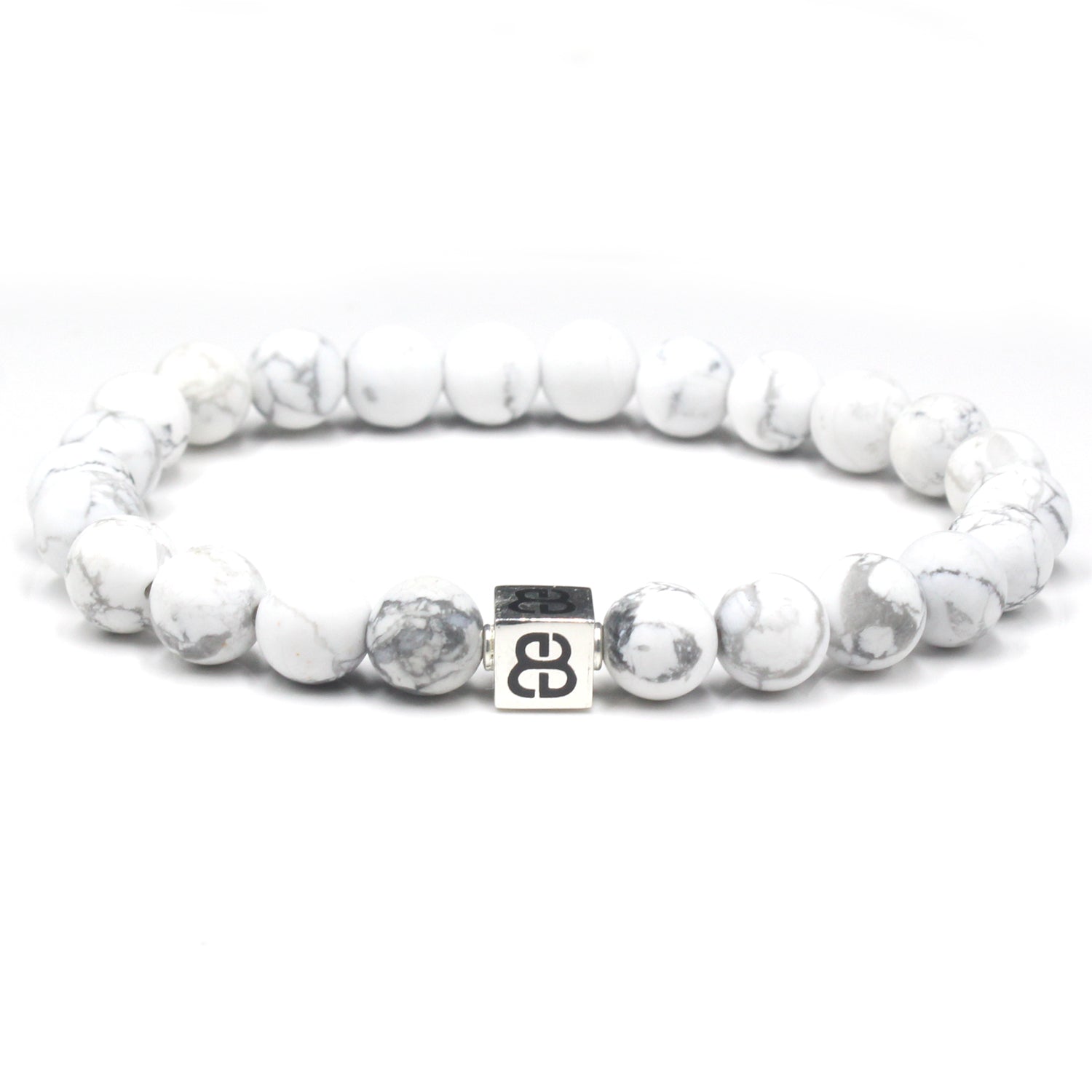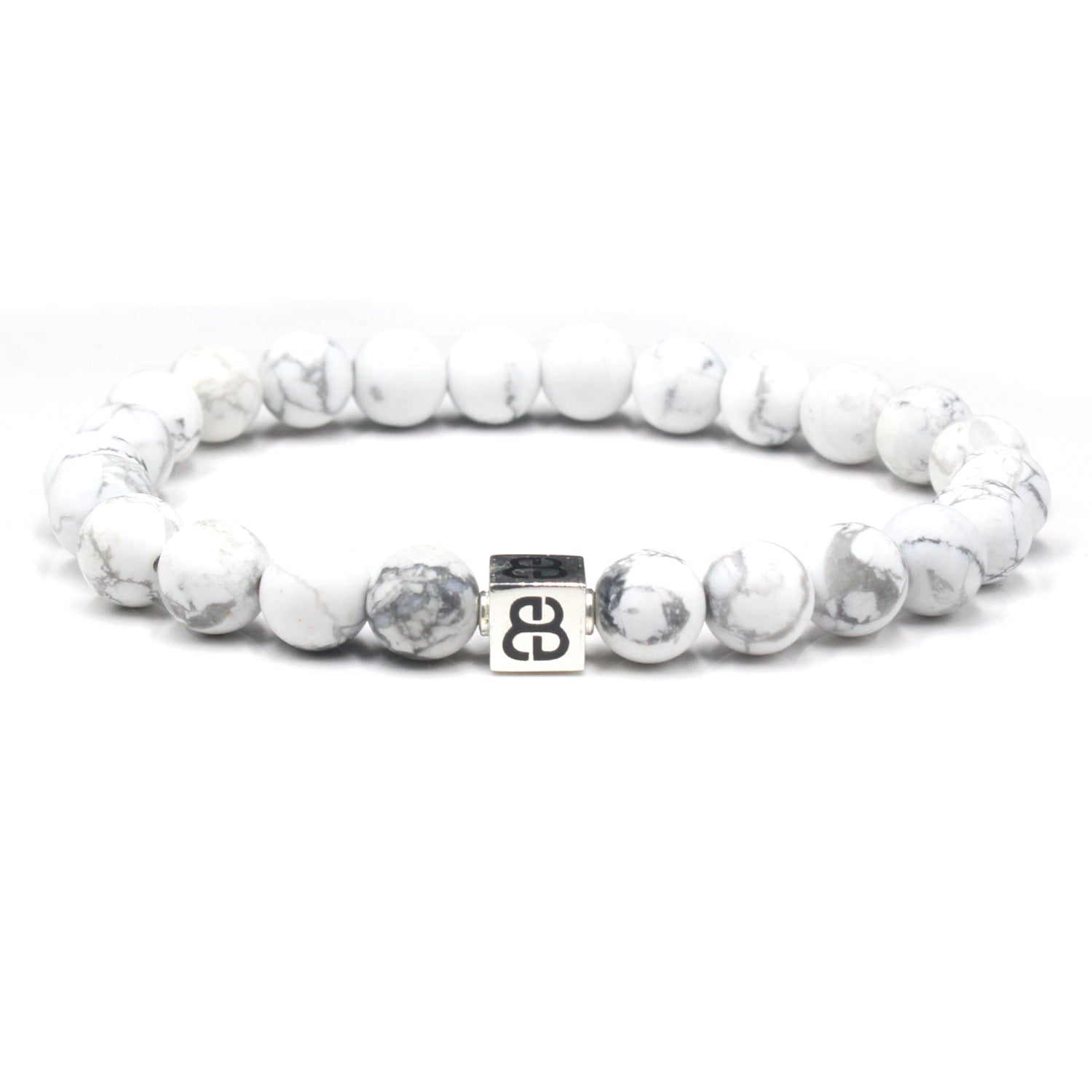 This bracelet features 8mm white howlite beads accented with a sterling silver "Bali Beads" logo anchor bead.